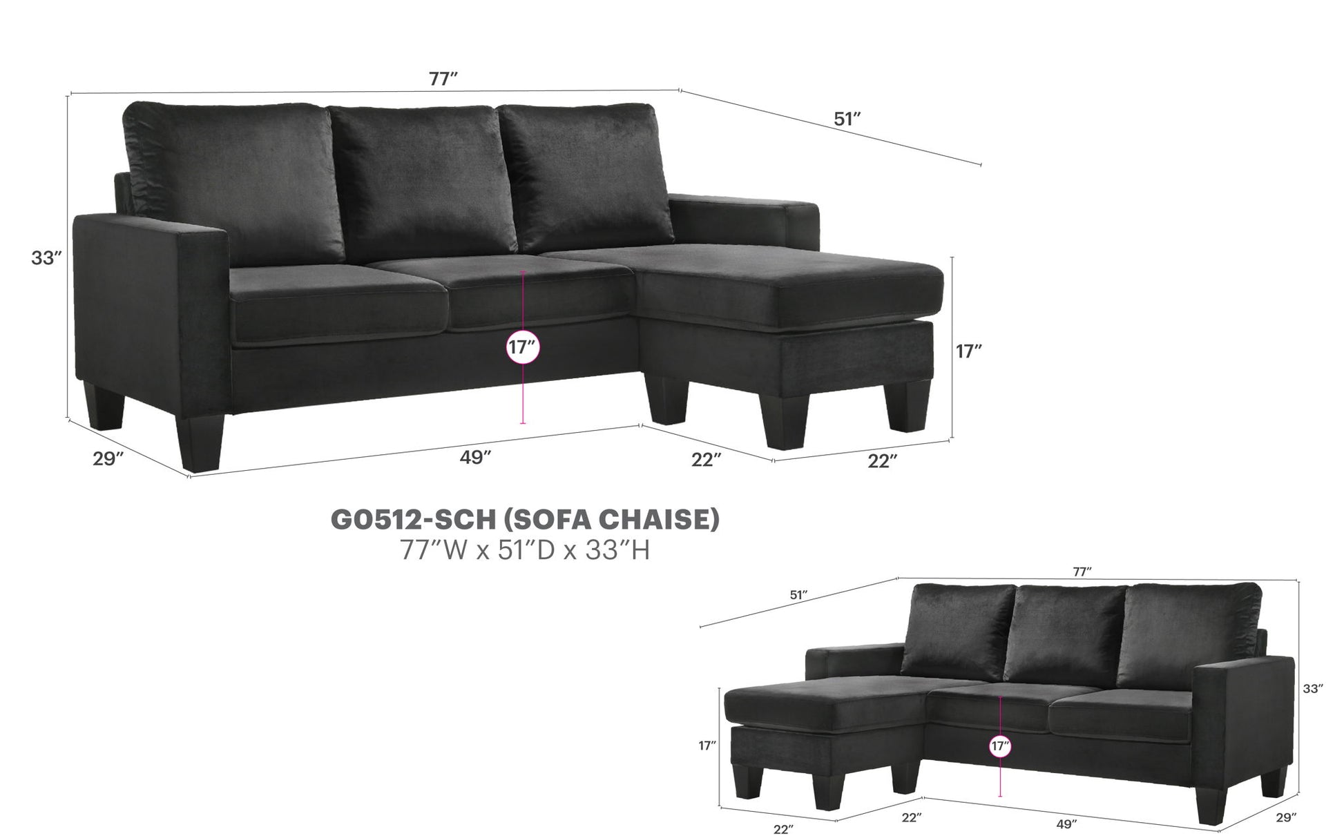 - Value Priced Reversible Sectional: Perfect for small rooms, dorms, and apartments.