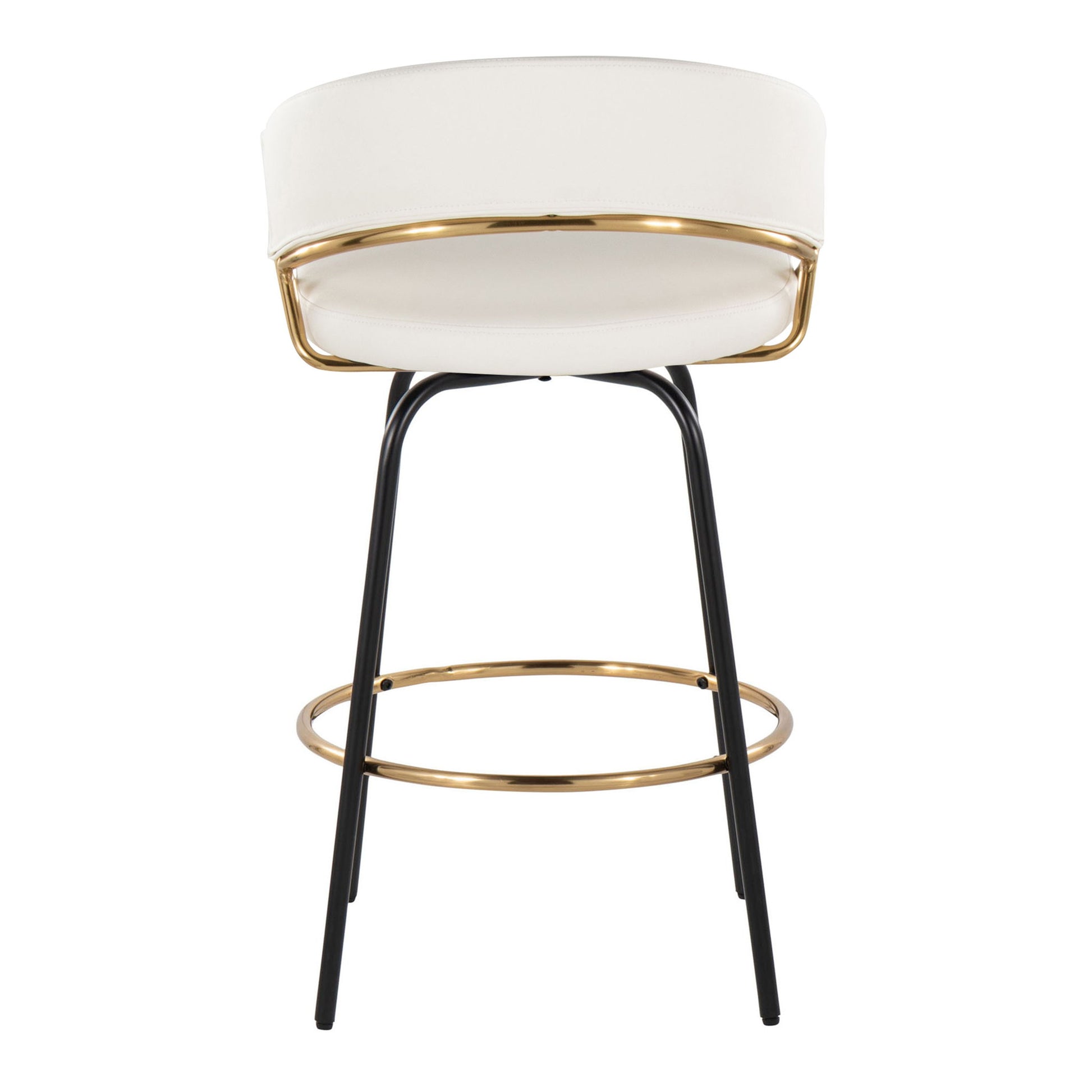 Jie - Fixed Height Contemporary Counter Stool With Swivel Round Footrest (Set of 2) - Gold / White / Black