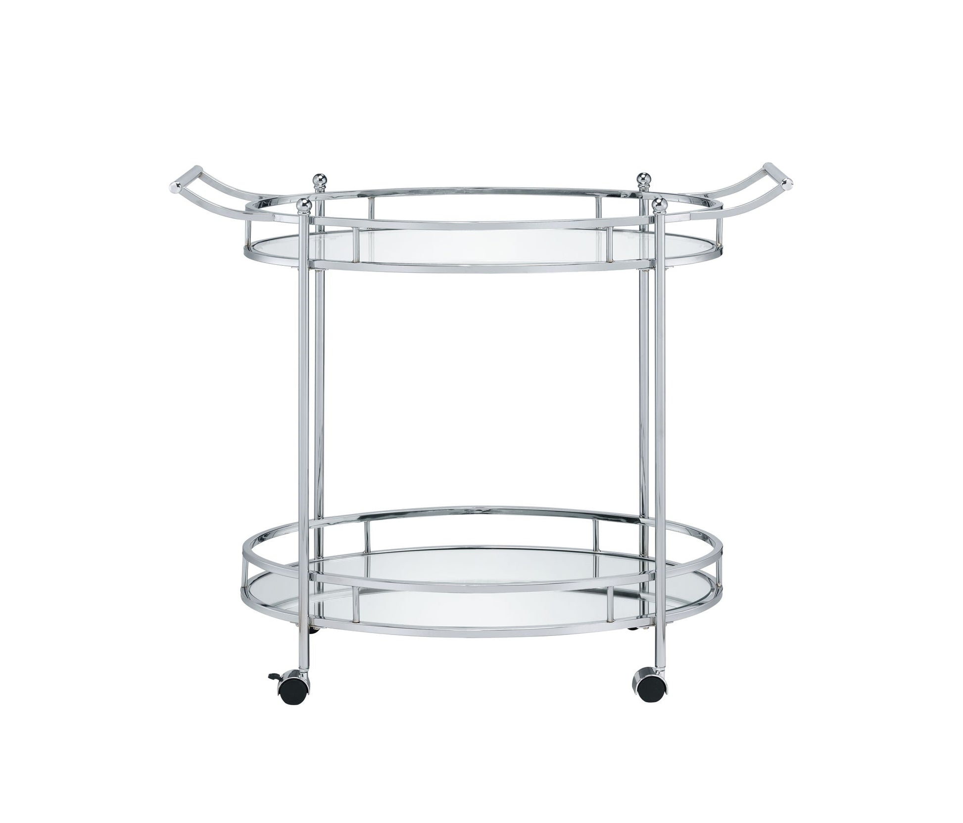 - Luxurious Touch: The gleaming chrome frame adds a luxurious touch, and the clear glass shelves let your displayed items take center stage, enhancing the cart's overall aesthetic appeal.