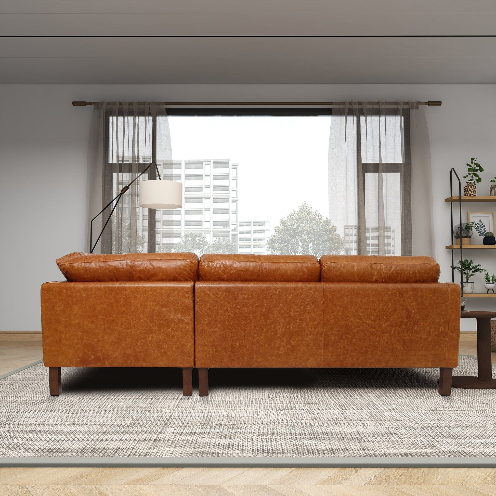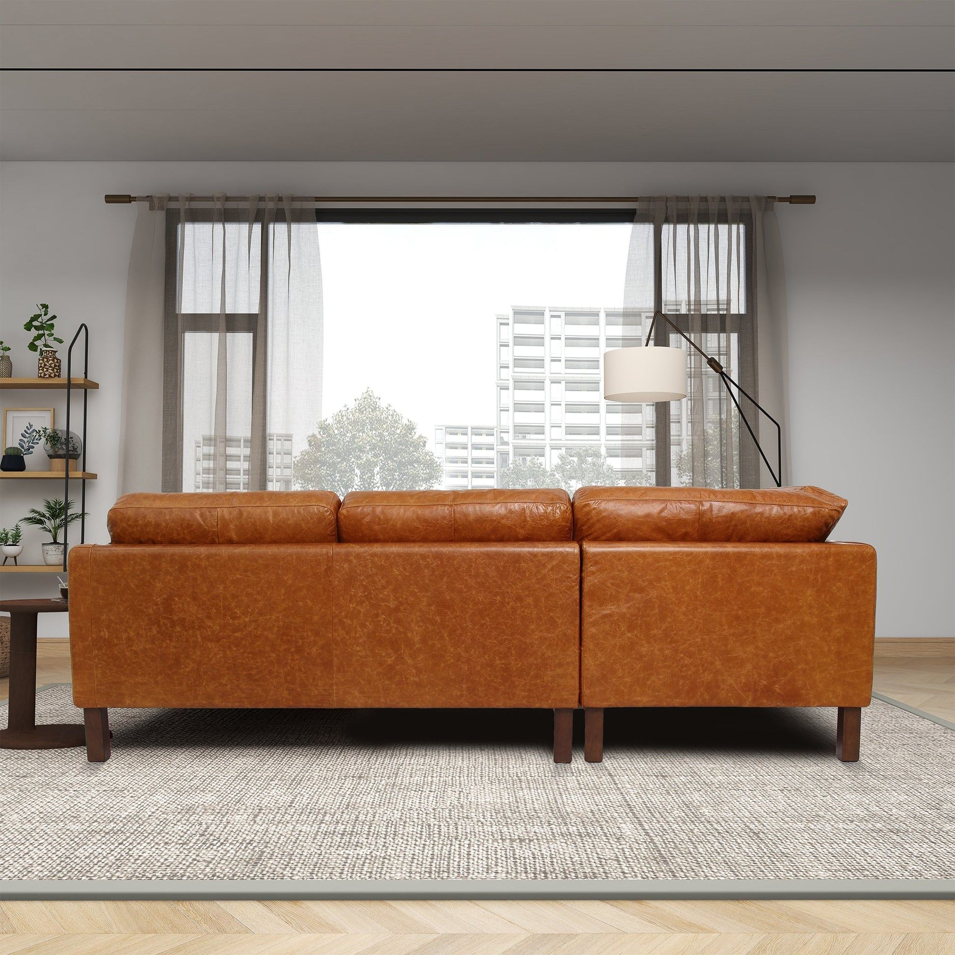- Elegant Design: The Juno Sectional Leather Sofa combines sophistication and elegance, featuring a rich wax and oil finish with 100% buffalo aniline-dyed leather upholstery that highlights color variations for a distinctive, classic style.