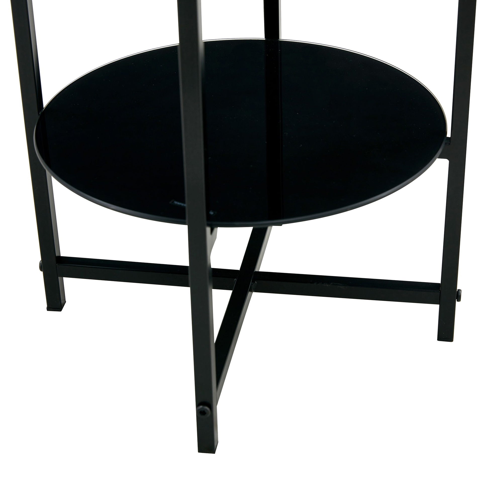 Tempered Glass End Table (Set of 2), Round Coffee Table For Bedroom Living Room Office - Black