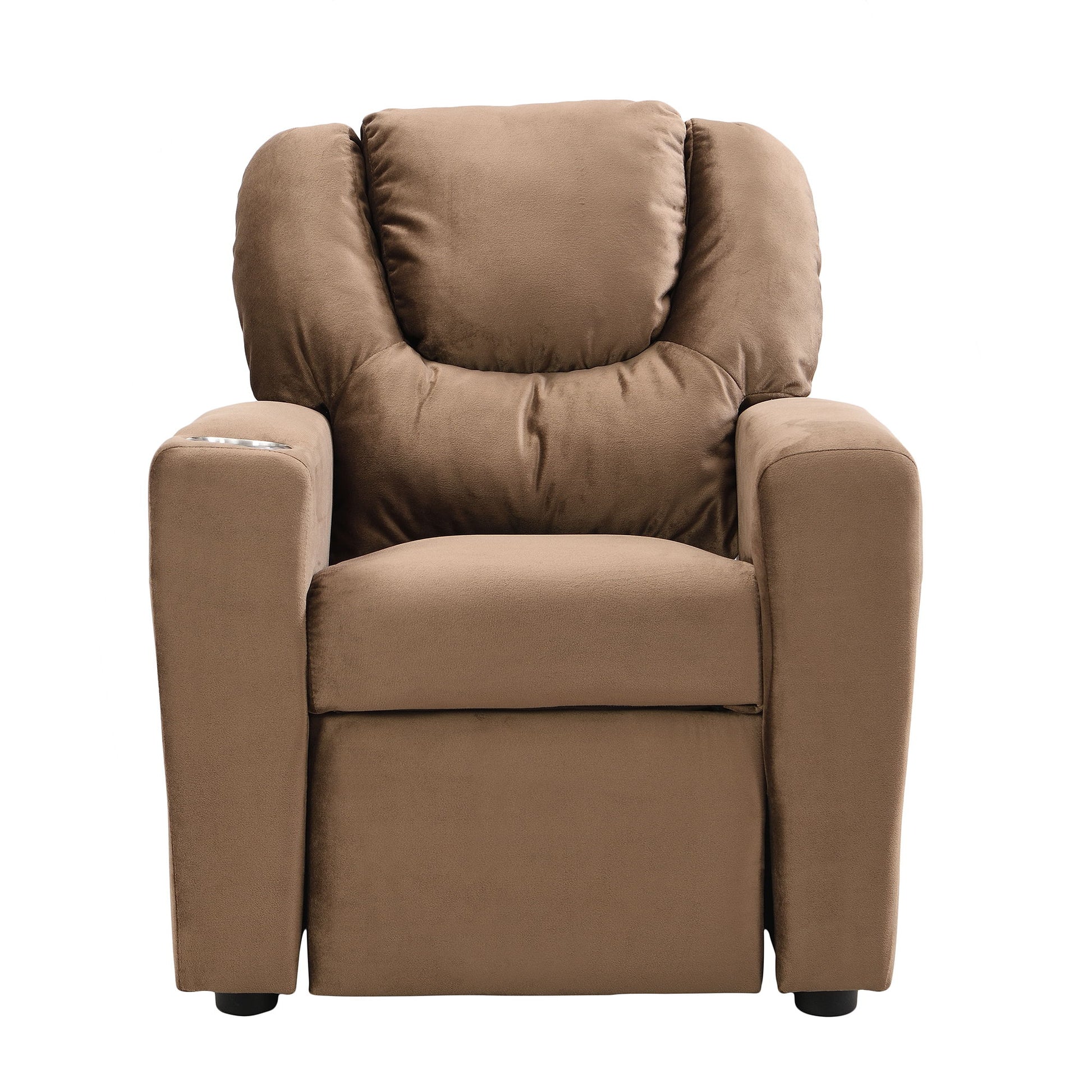 Kids Recliner Chair, Kids Upholstered Couch With One Cup Holder, Toddlers Recliner With Headrest And Footrest - Brown