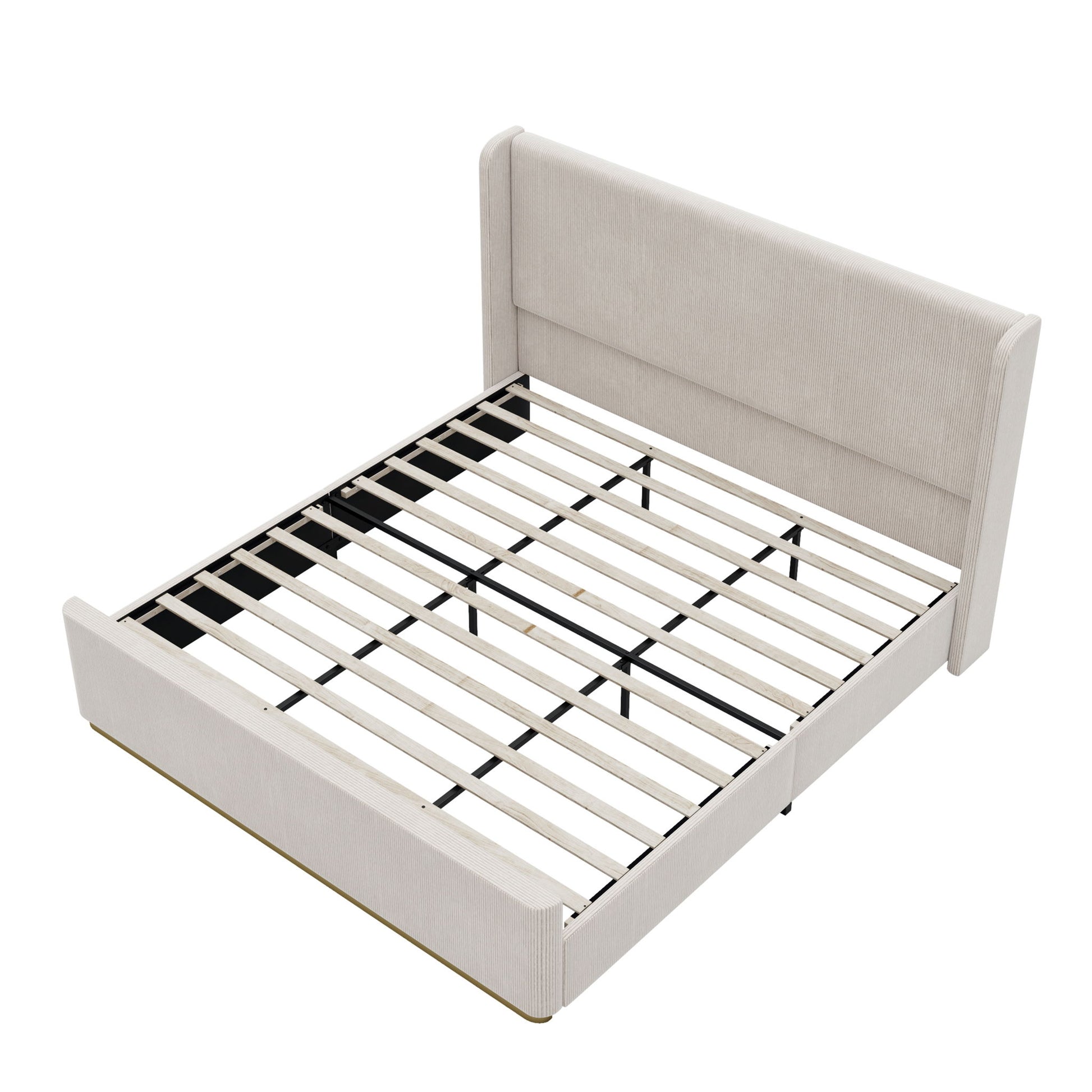 - Luxurious Corduroy Fabric: Upholstered in soft, vertical-striped corduroy, this bed exudes luxury and warmth. The rich texture adds depth to your decor while offering a cozy feel that complements any design theme.