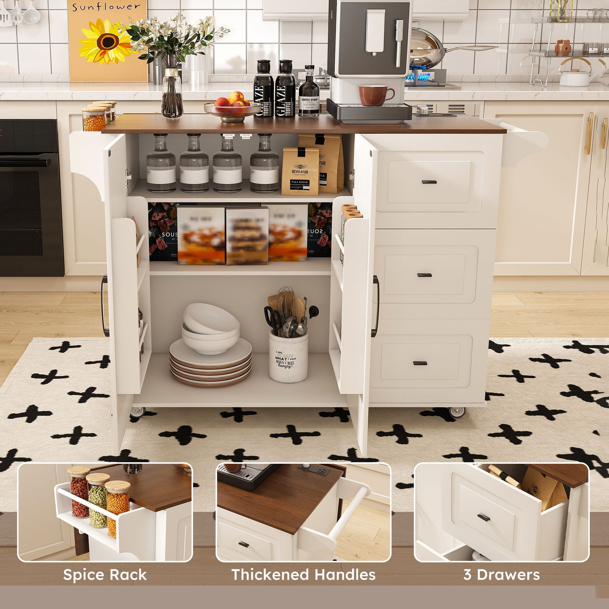 Kitchen Island Cart With Foldable Tabletop & Drop Leaf Mobile Breakfast Bar With Wood Top And Storage - White / Walnut