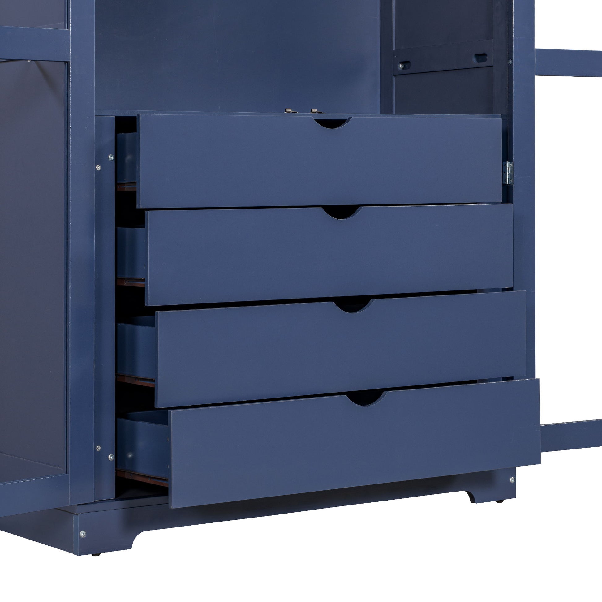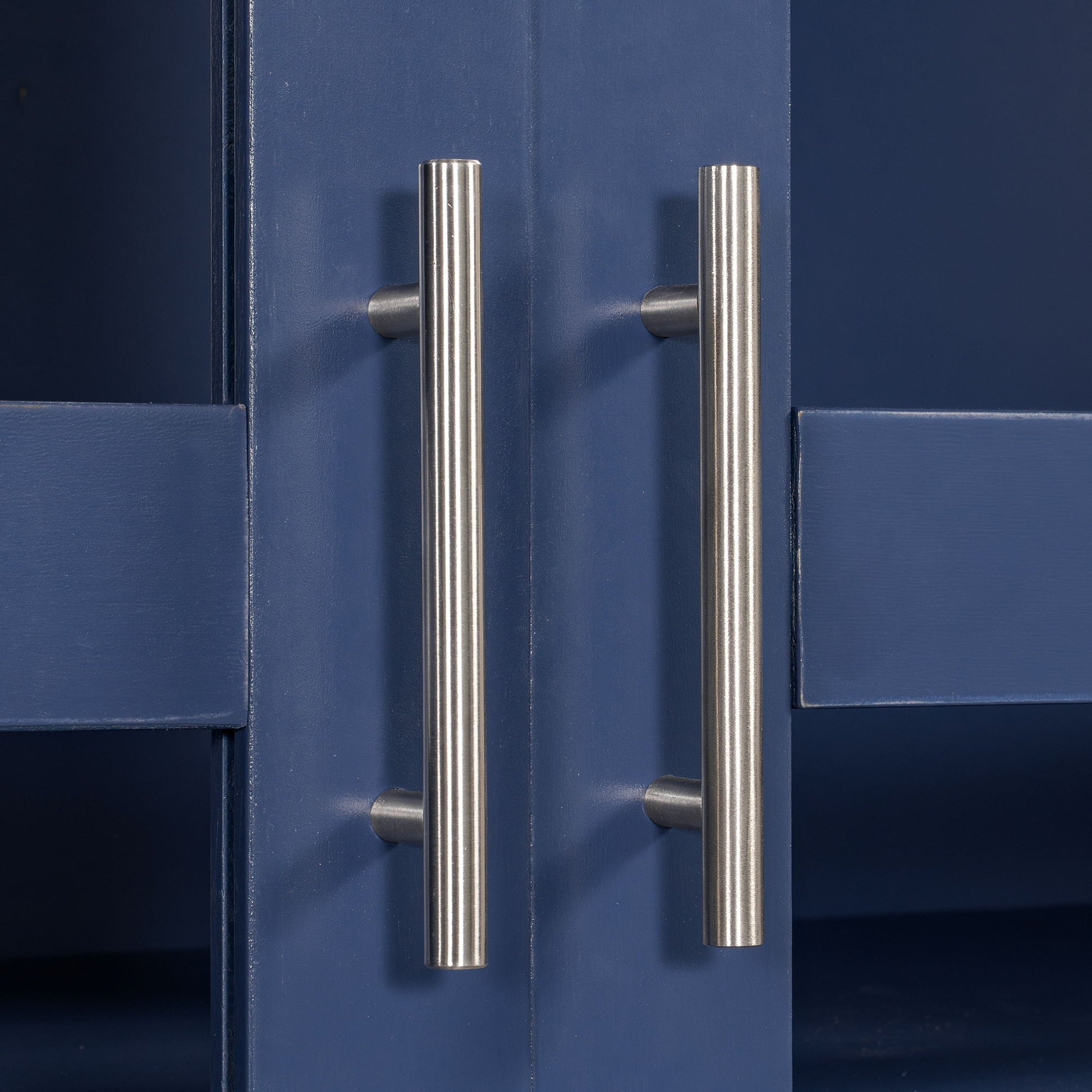 Kitchen Pantry, Freestanding Kitchen Storage Cabinet Display Cabinet With Glass Doors And 4 Built In Drawers For Living Room, Home Office - Blue