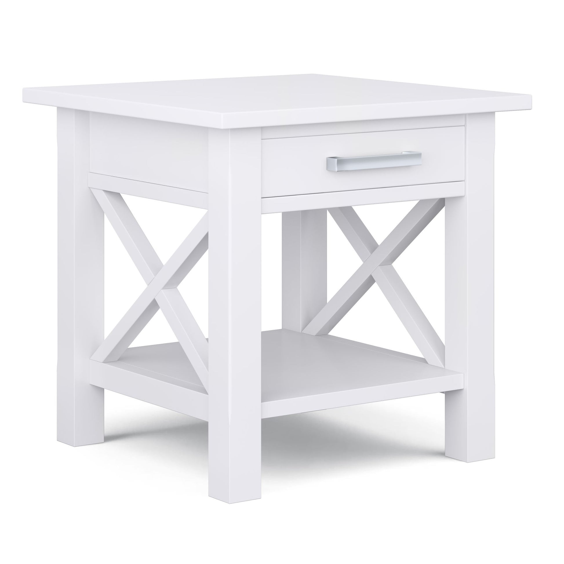 - Features one large drawer with metal drawer glides and an open bottom shelf providing ample storage space.