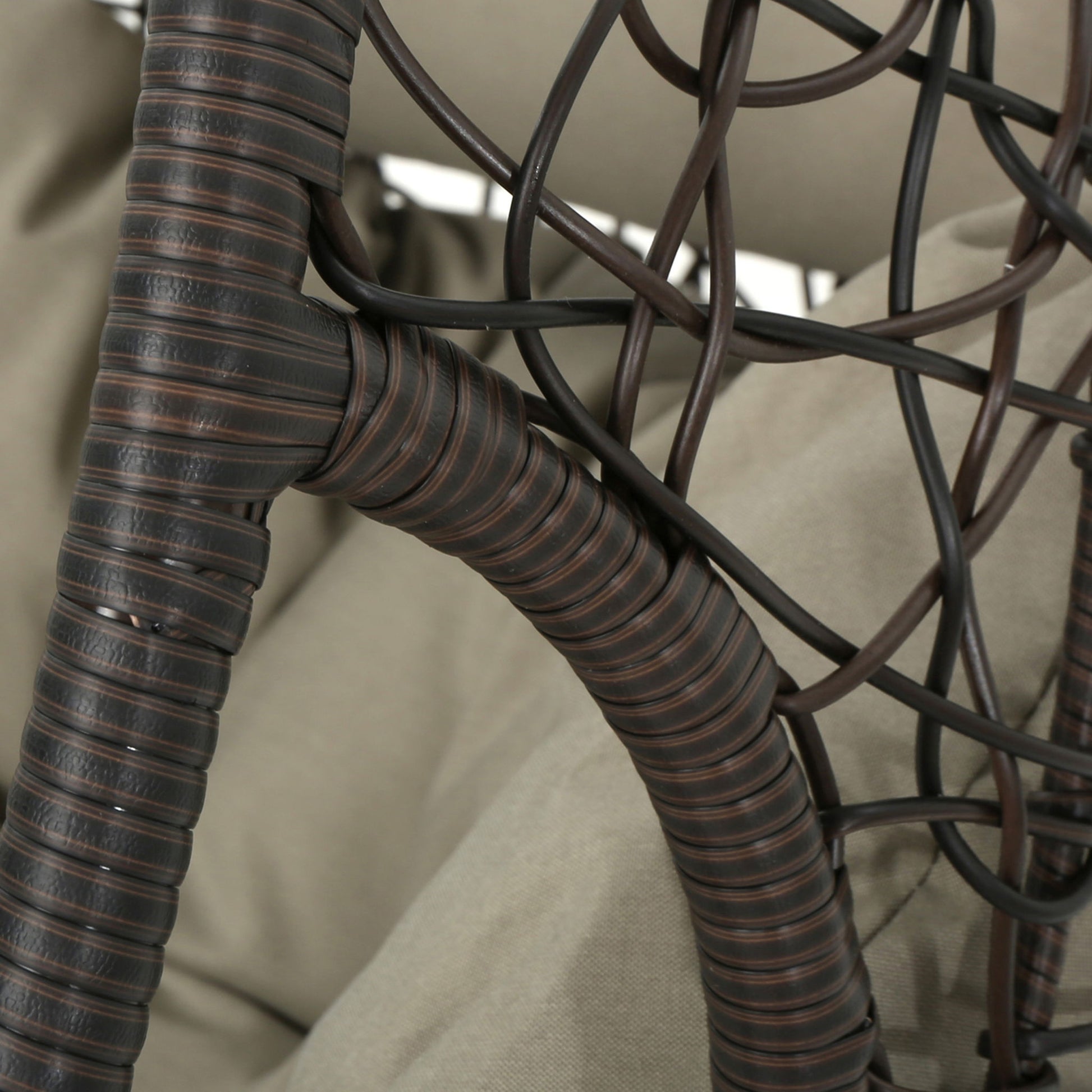 Kylie - Hanging Basket Chair Brown Cozy Rattan Design With Water Resistant Cushions - Khaki / Brown