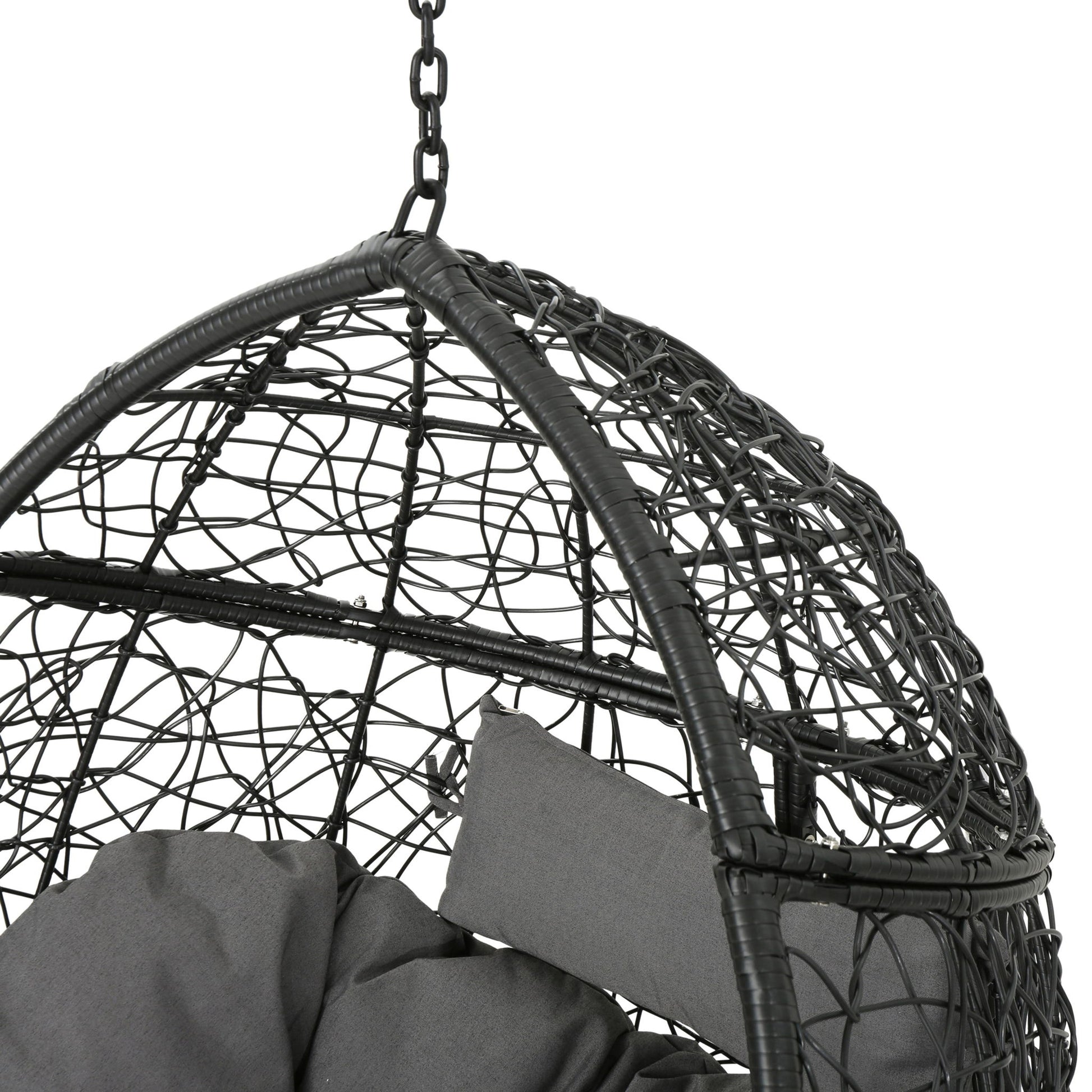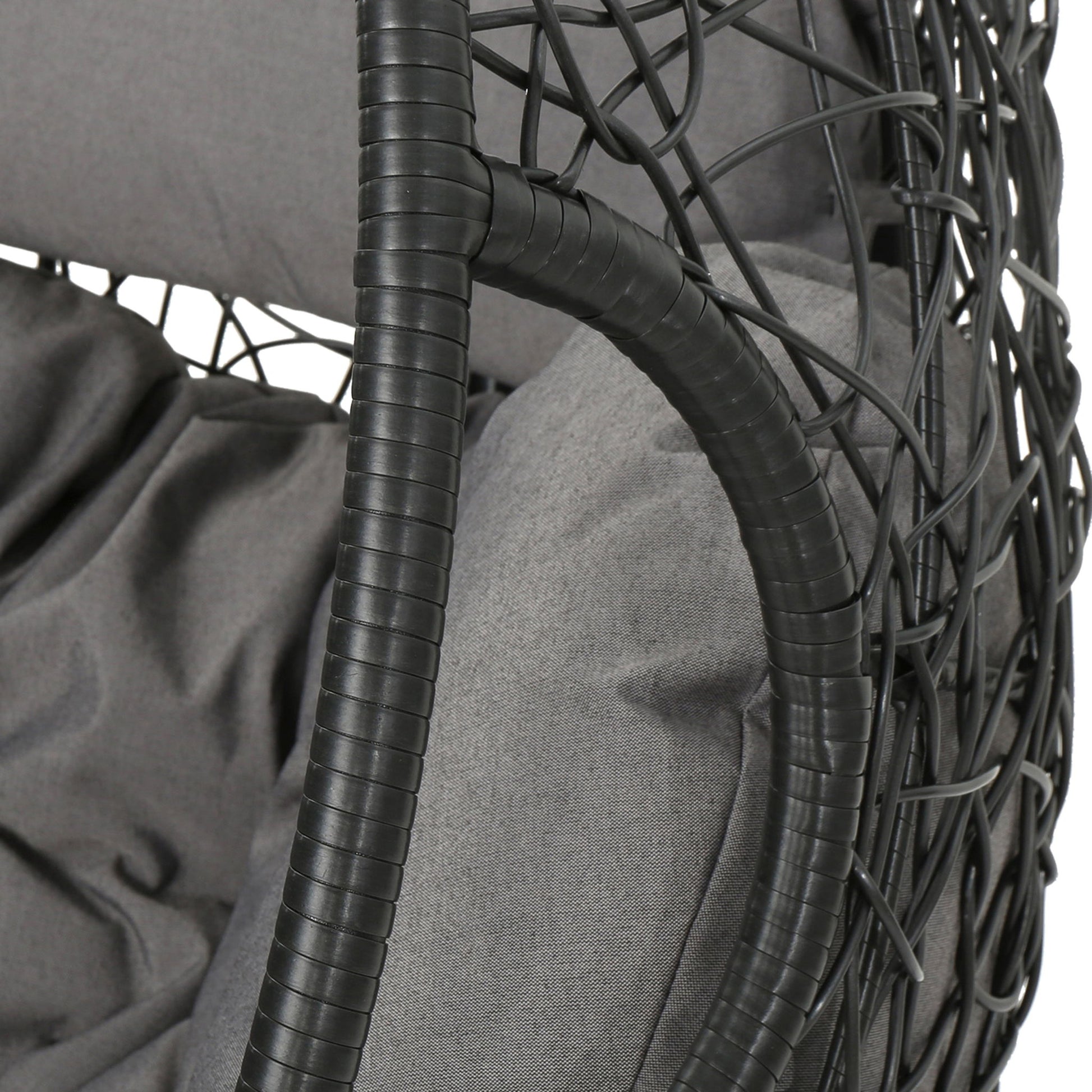 Kylie - Boho Style Hanging Basket Chair Rattan With Water Resistant Cushions - Gray