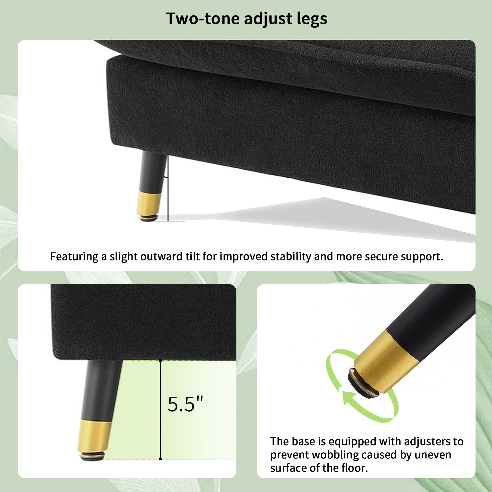 - Aesthetic Flexibility: Featuring two-tone adjustable metal legs, this sofa combines functionality and style by allowing height customization for optimal comfort and stability on different floor types. Its modern design enhances any room's decor, while the adjustable legs facilitate easy cleaning underneath.