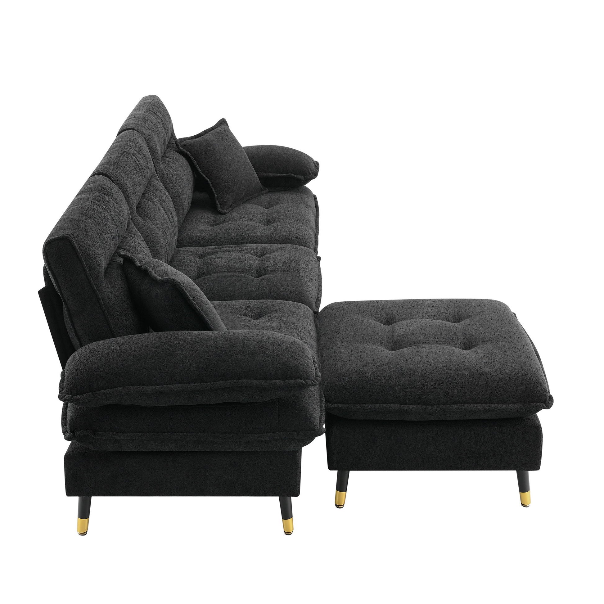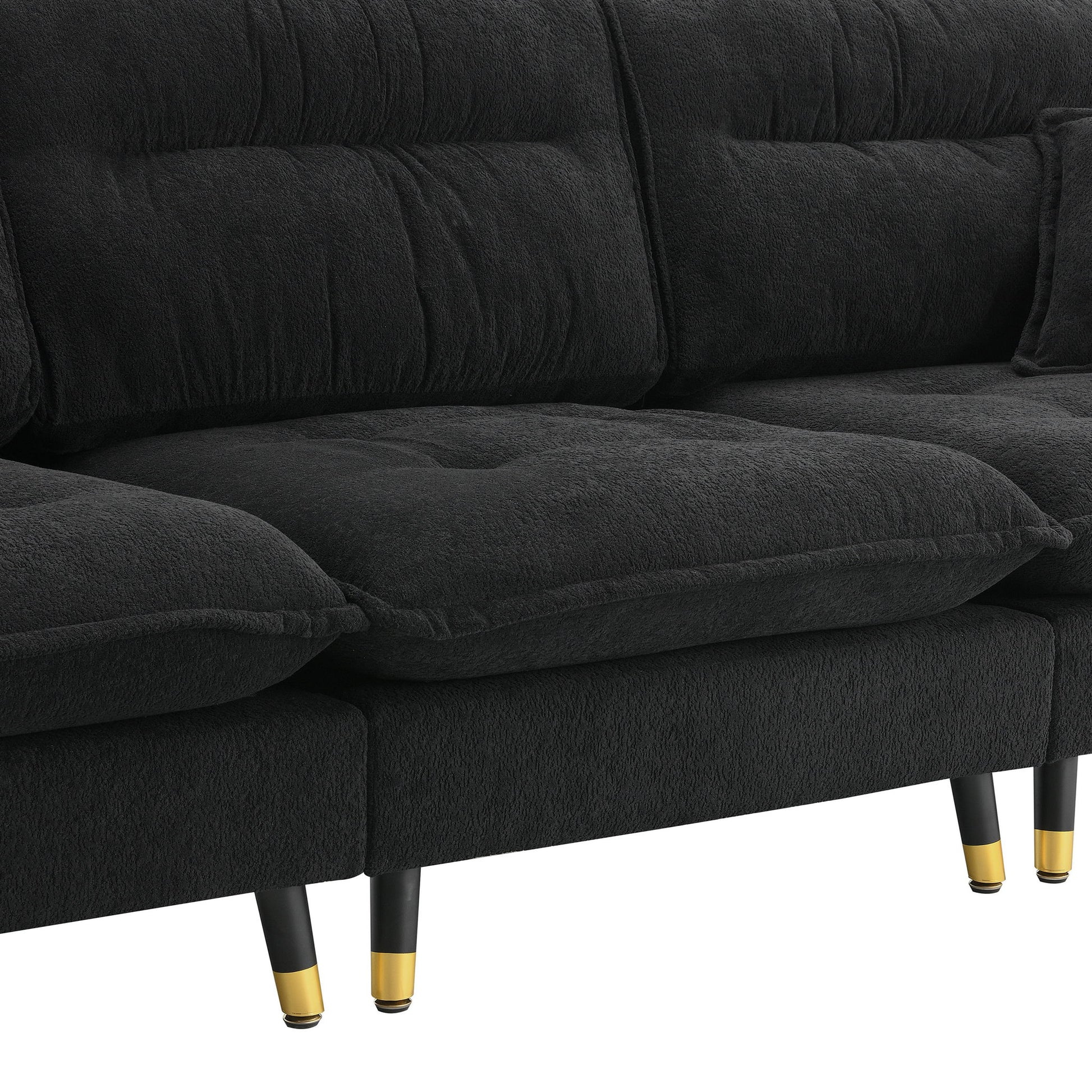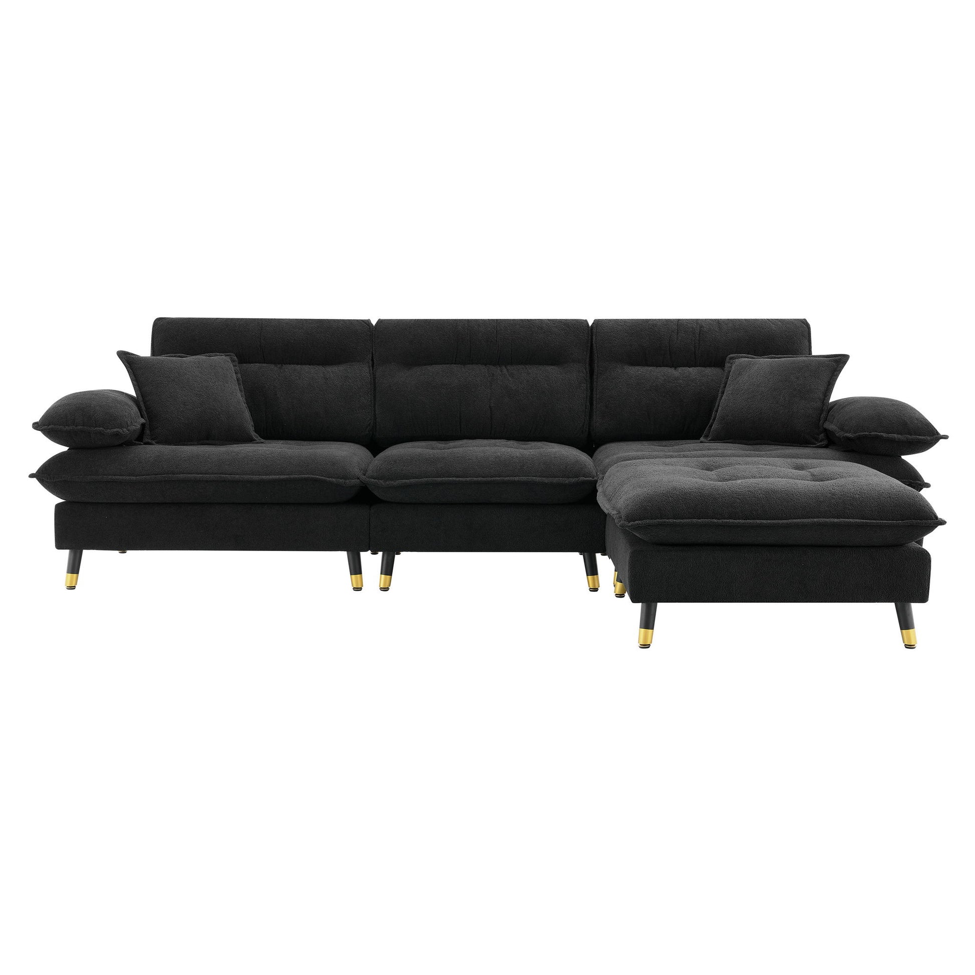 L Shaped Convertible Sectional Sofa 4 Seat Tufted Couch Set With Two Tone Adjust Legs Cloud Movable Ottoman - Black