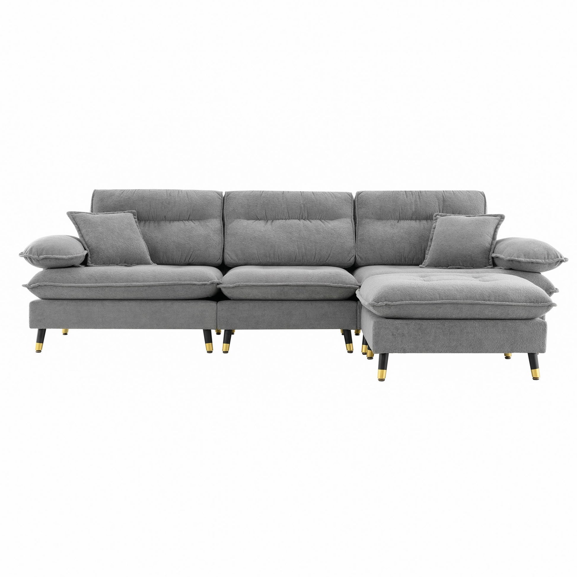 L Shaped Convertible Sectional Sofa 4 Seat Tufted Couch Set With Two Tone Adjust Legs Cloud Movable Ottoman - Gray