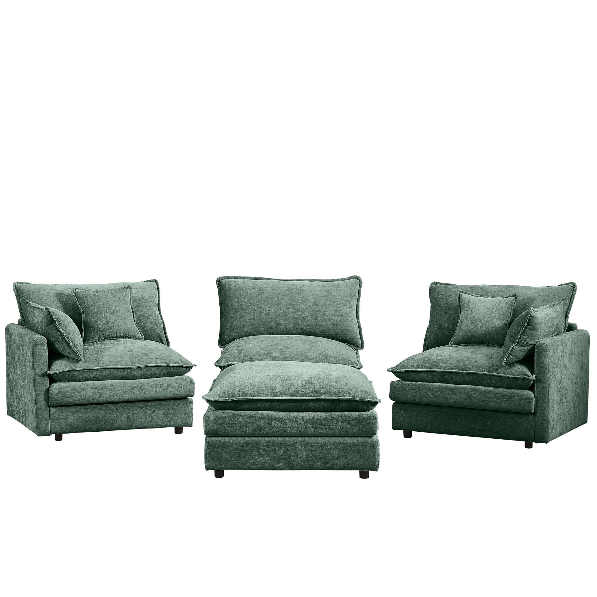 Modular L-Shaped Sectional Sofa, 3 Seater Cloud Couch & Movable Ottoman - Green