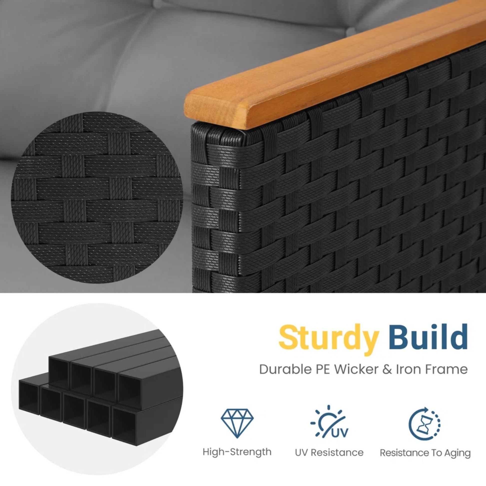 - Weather-Resistant Frame: Durable powder-coated iron frame with tight PE rattan weave withstands sun, rain, and wind without fading or rusting