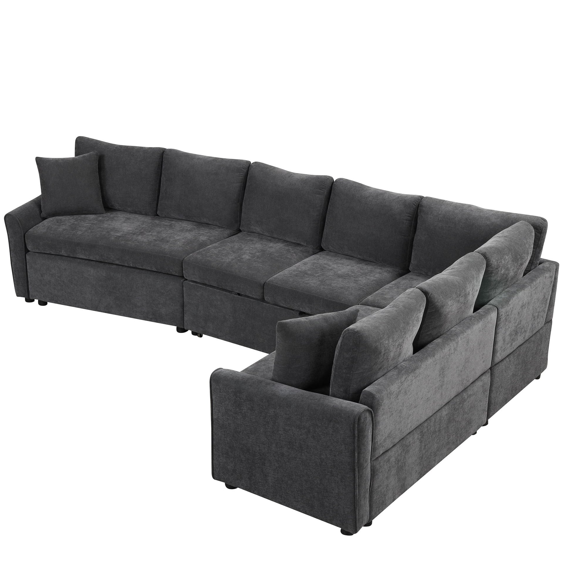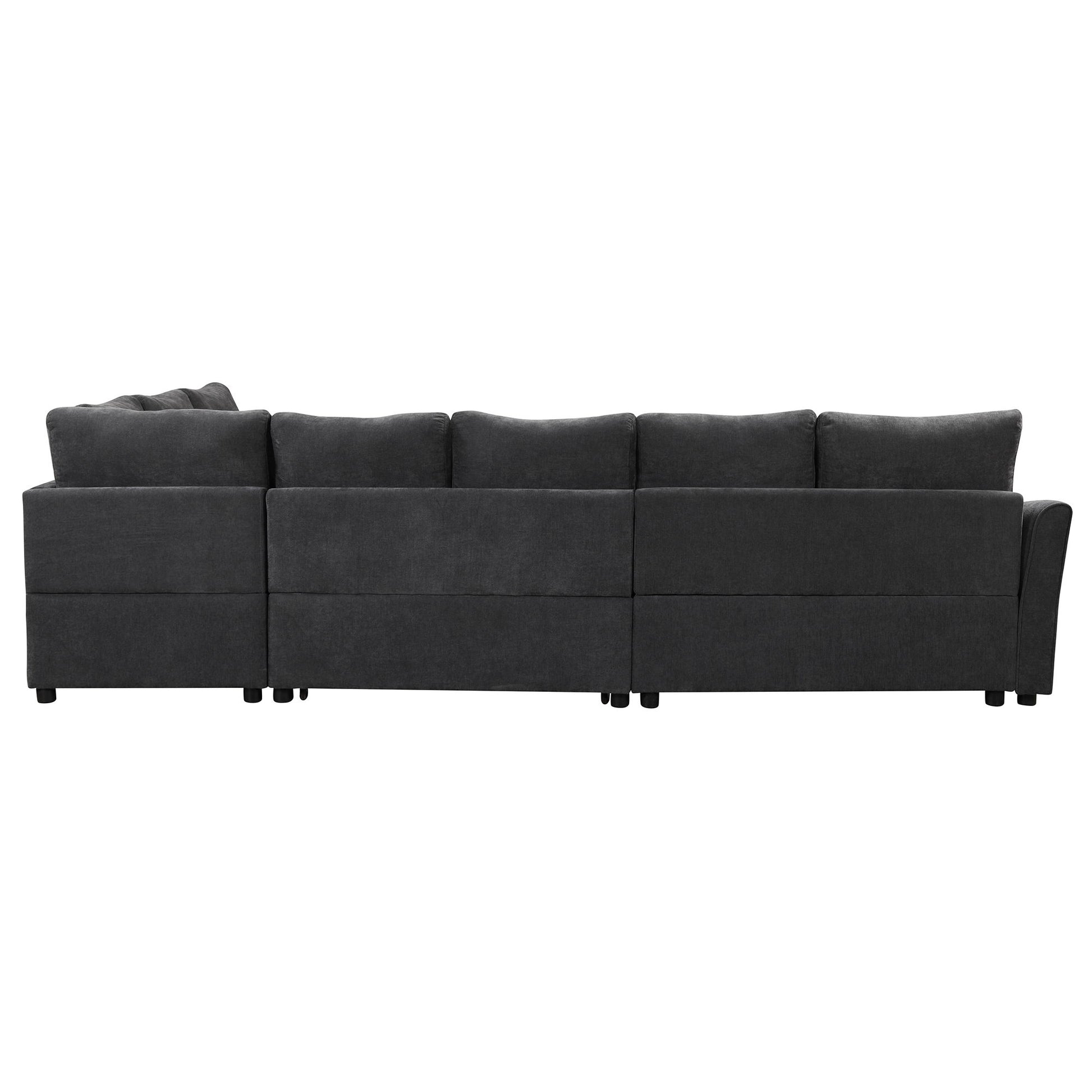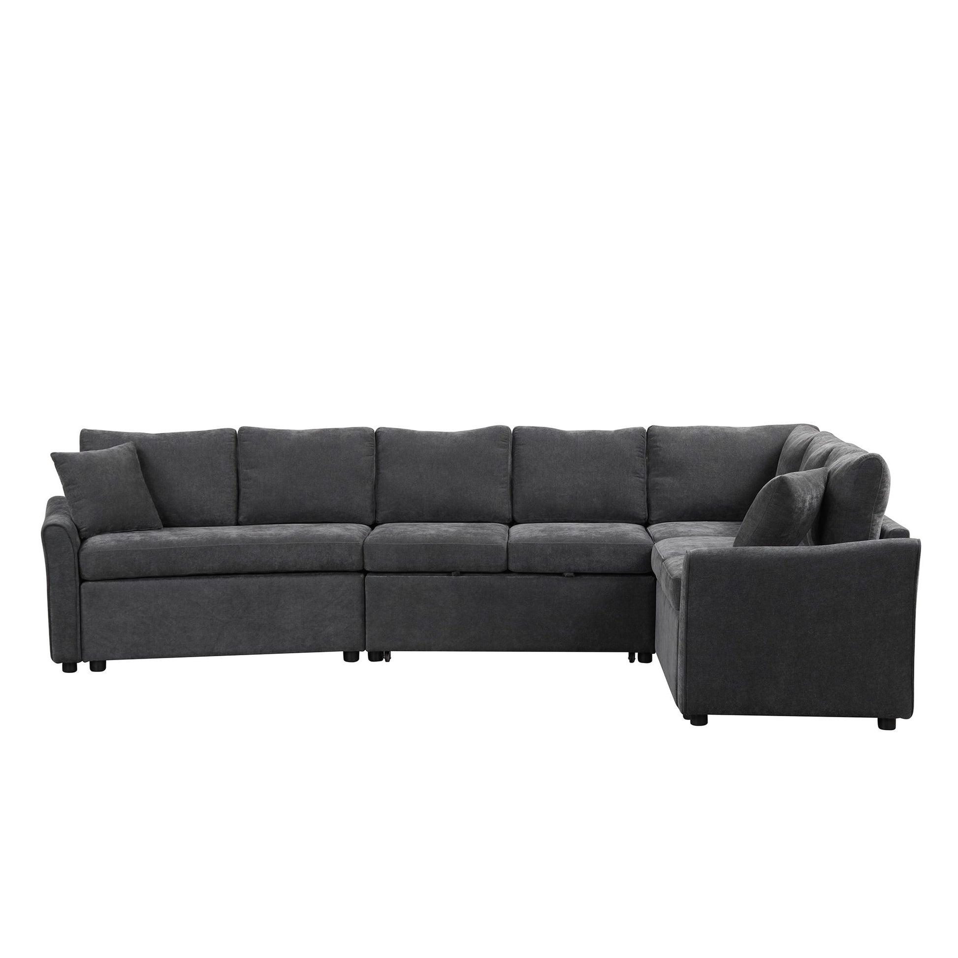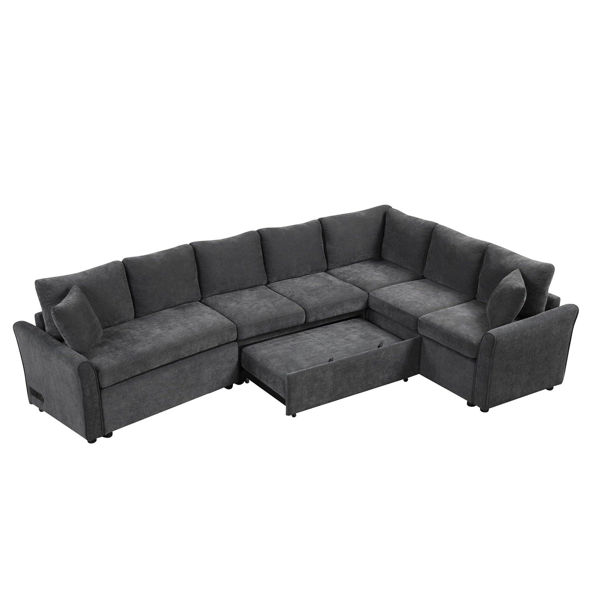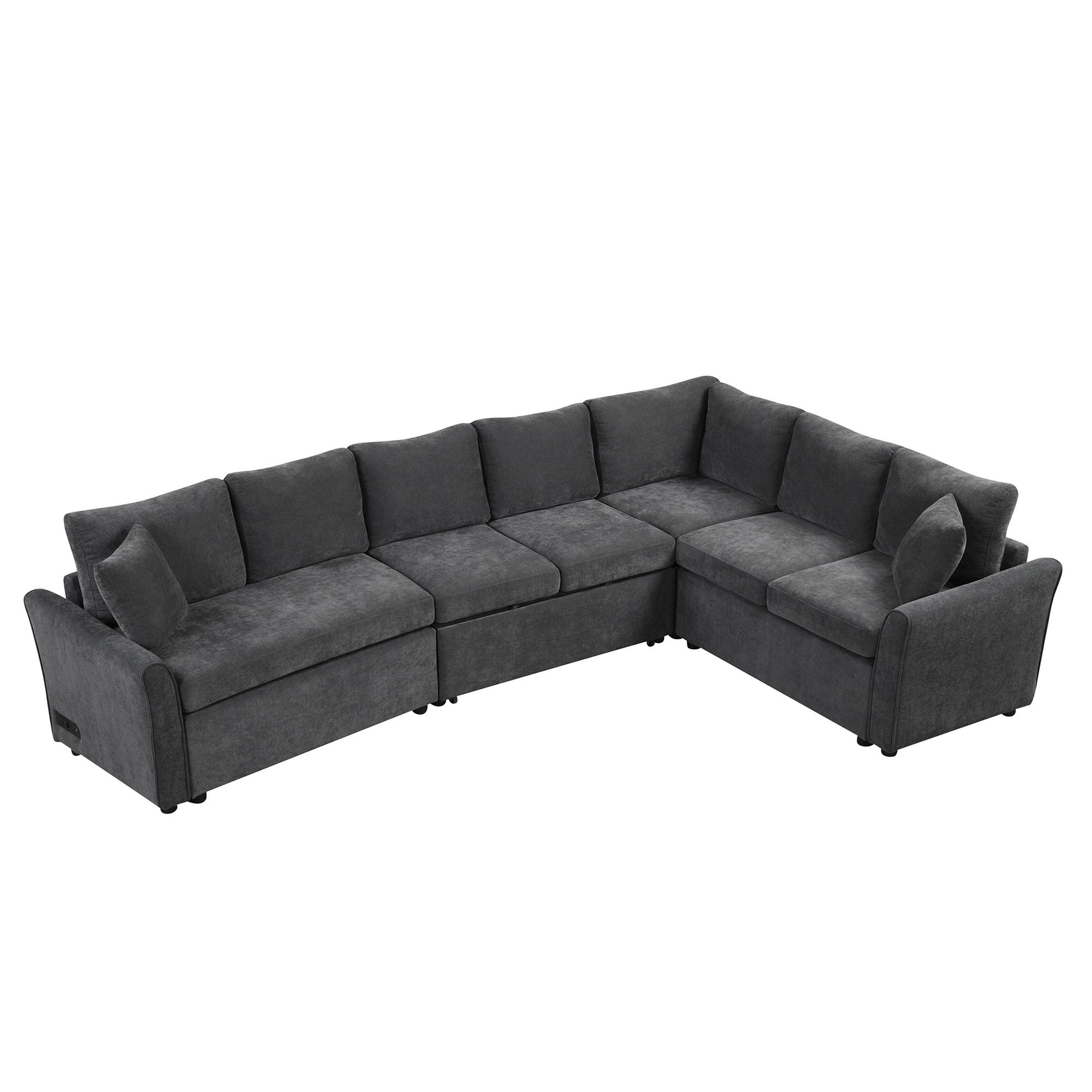 L-Shaped Sofa Convertible Sofa Bed Pull Out Sofa Sleeper With Two Back Pillows, Two USB Ports And Two Power Sockets For Living Room - Gray