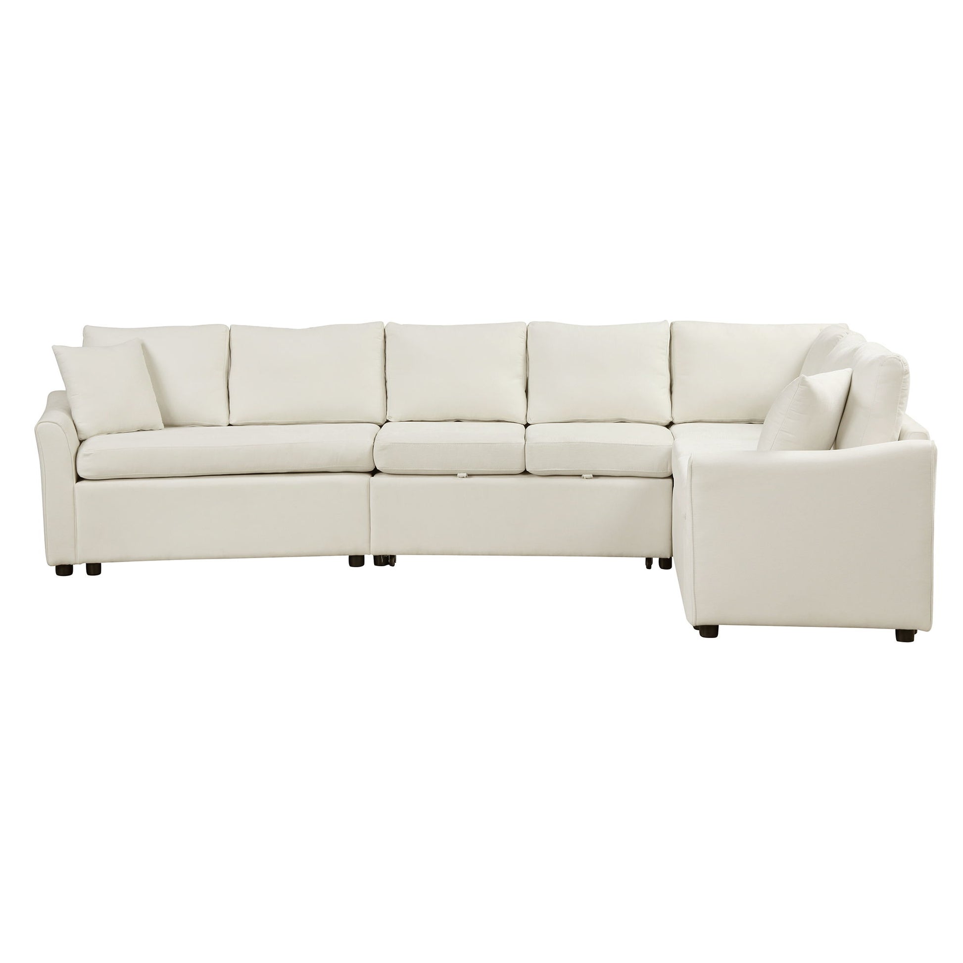 L-Shaped Sofa Convertible Sofa Bed Pull Out Sofa Sleeper With Two Back Pillows, Two USB Ports And Two Power Sockets For Living Room - Beige