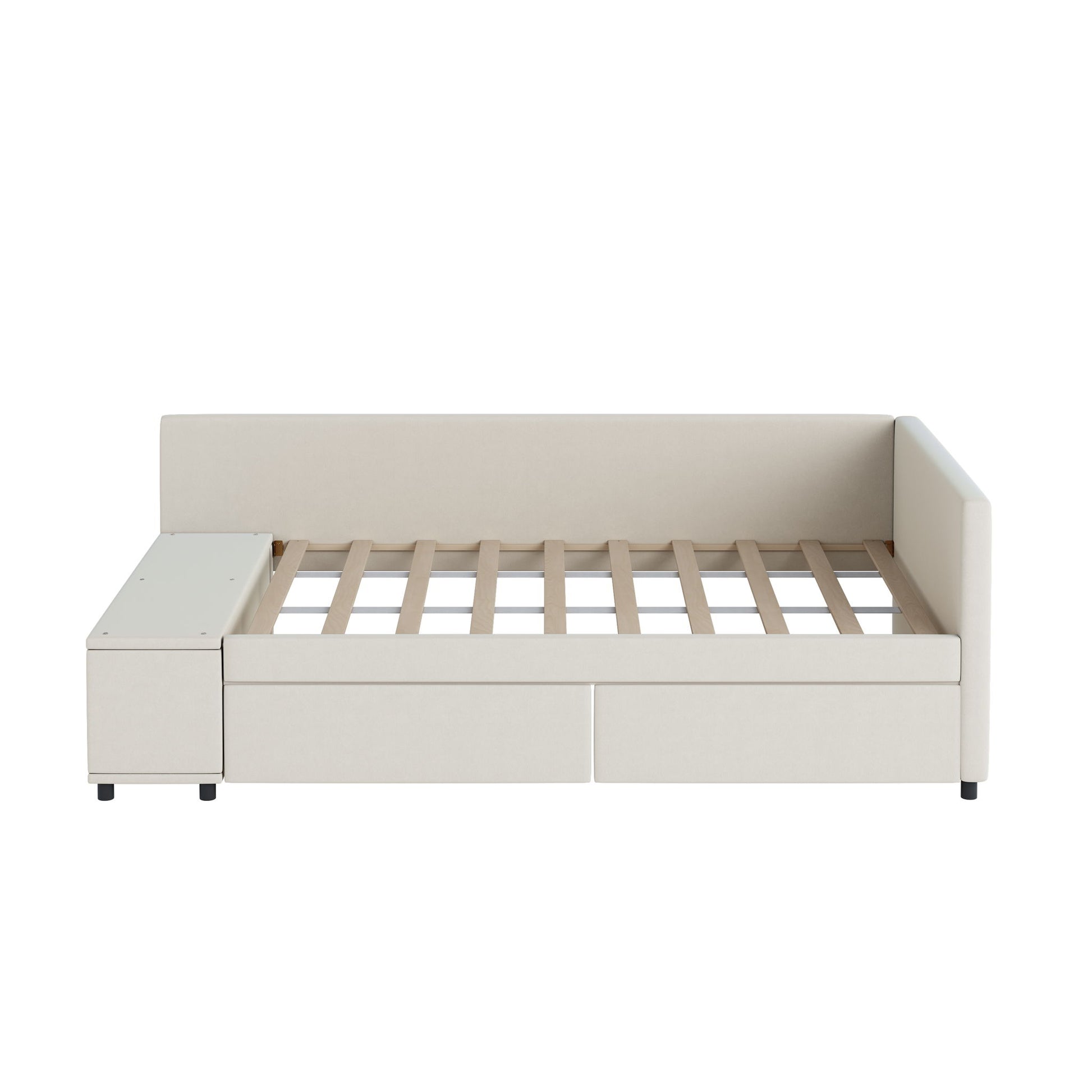 Twin L Shaped Upholstered Platform Bed With Storage And Drawers - Beige
