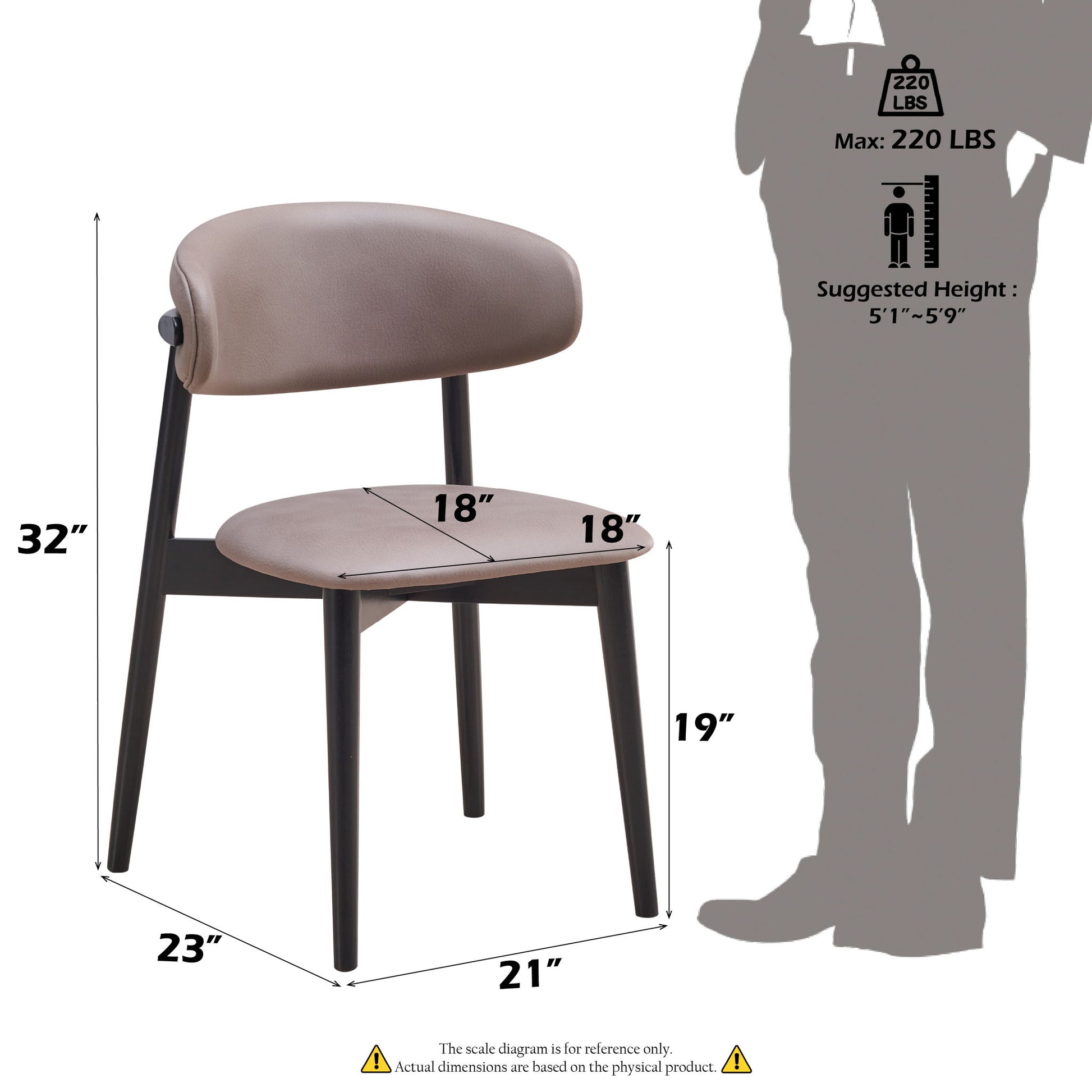 - Chair Specifications: Each side chair measures 23"D x 21"W x 32"H. With a seat width and depth of 18", a seat height of 19", and a back height of 13", these chairs provide comfort and support with a weight capacity of 220lbs per seat.