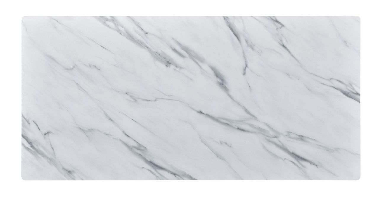 Landon 47"W Coffee Table with Glass White Marble Texture Top and Bent Wood Design