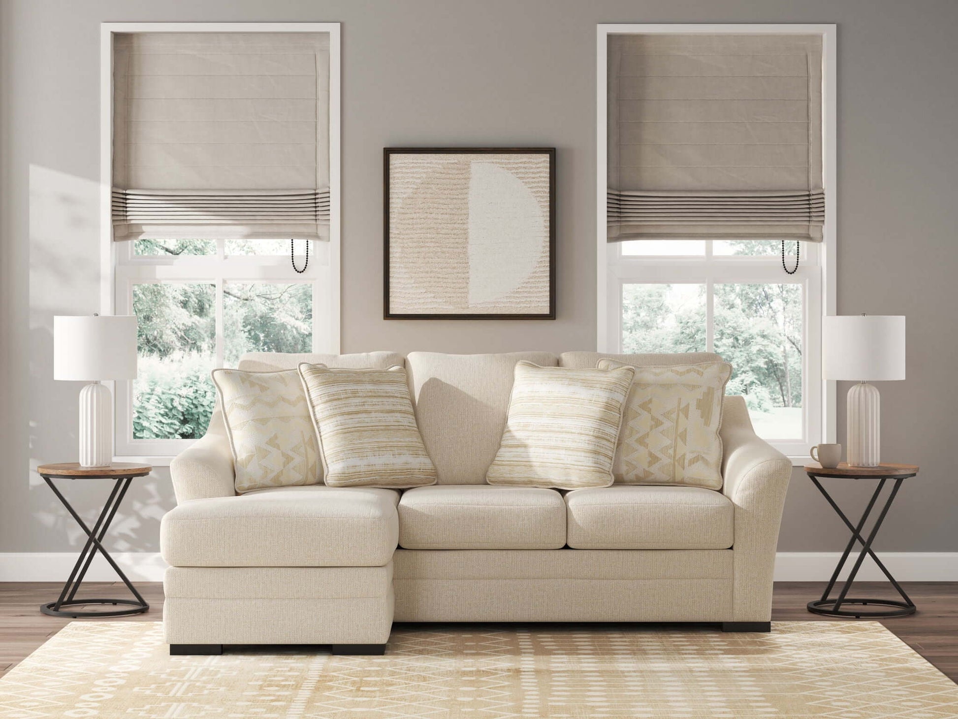 - Accent pillows included