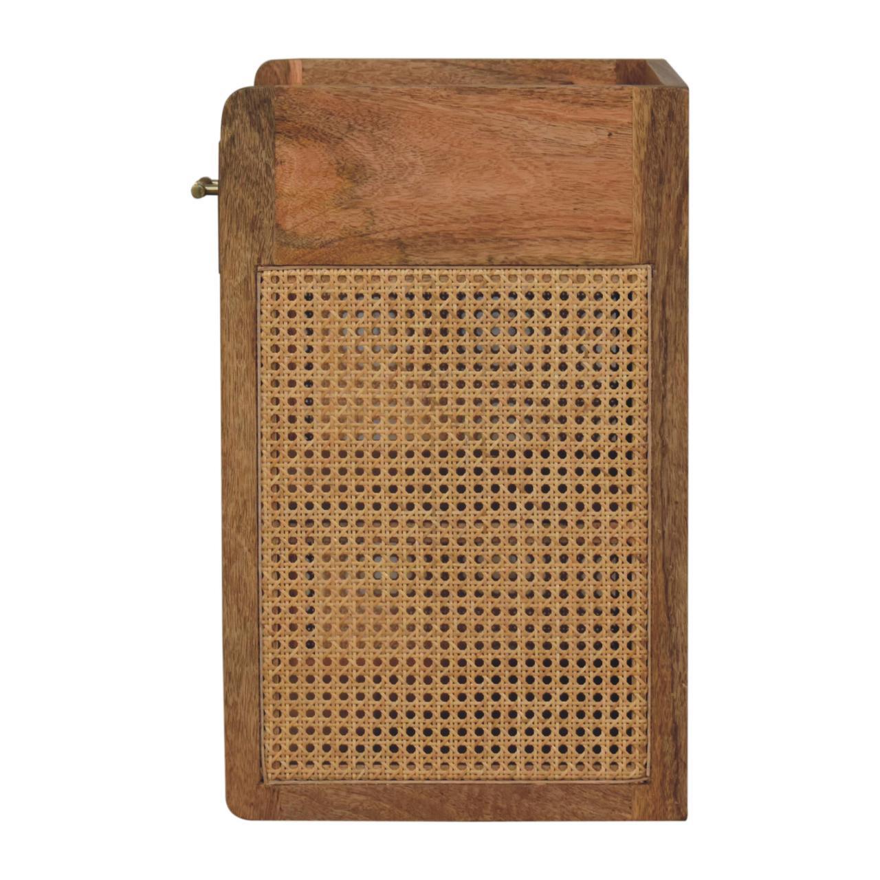 - Artisan Furniture Solid Wood Larissa T-Bar Open Bedside - The Larissa T-bar Open Beside will stand out in your interior thanks to its understated look and subtle originality. It has been constructed from 100% solid mango wood in an oak-ish finish. It features a T-bar handle and 1 drawer ensuring storage space to keep things close before bedtime, as well as 2 open slots.
