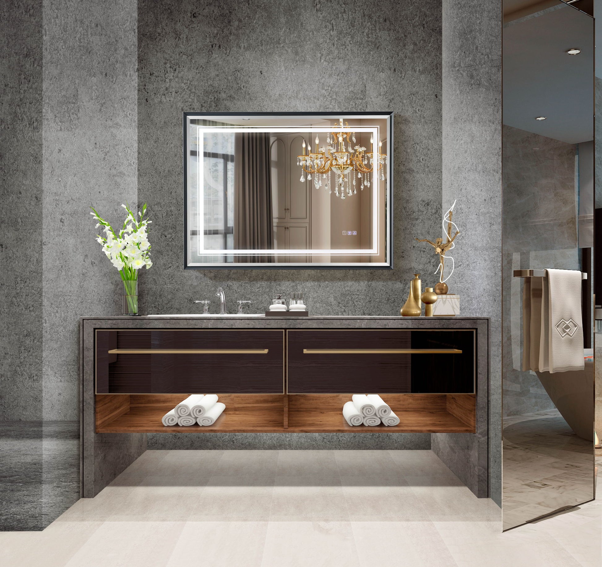 - Elegant Design: Featuring smooth aluminum frame lines and a three-dimensional beveled edge lens, this mirror enhances the bathroom's ambiance with front and side lighting, creating a sophisticated double-layer lighting effect.