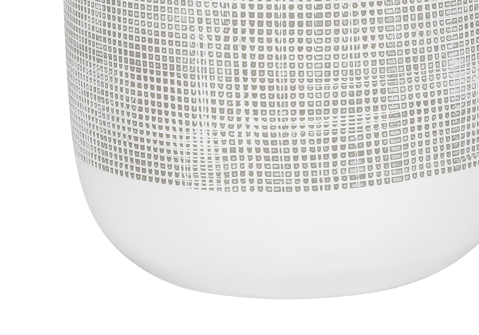 - Stylish Design: This 27-inch ceramic table lamp features a smooth white and textured grey vase-shaped base, topped with a beige linen drum shade and a silver finial, adding a fresh and fashionable touch to any contemporary space.