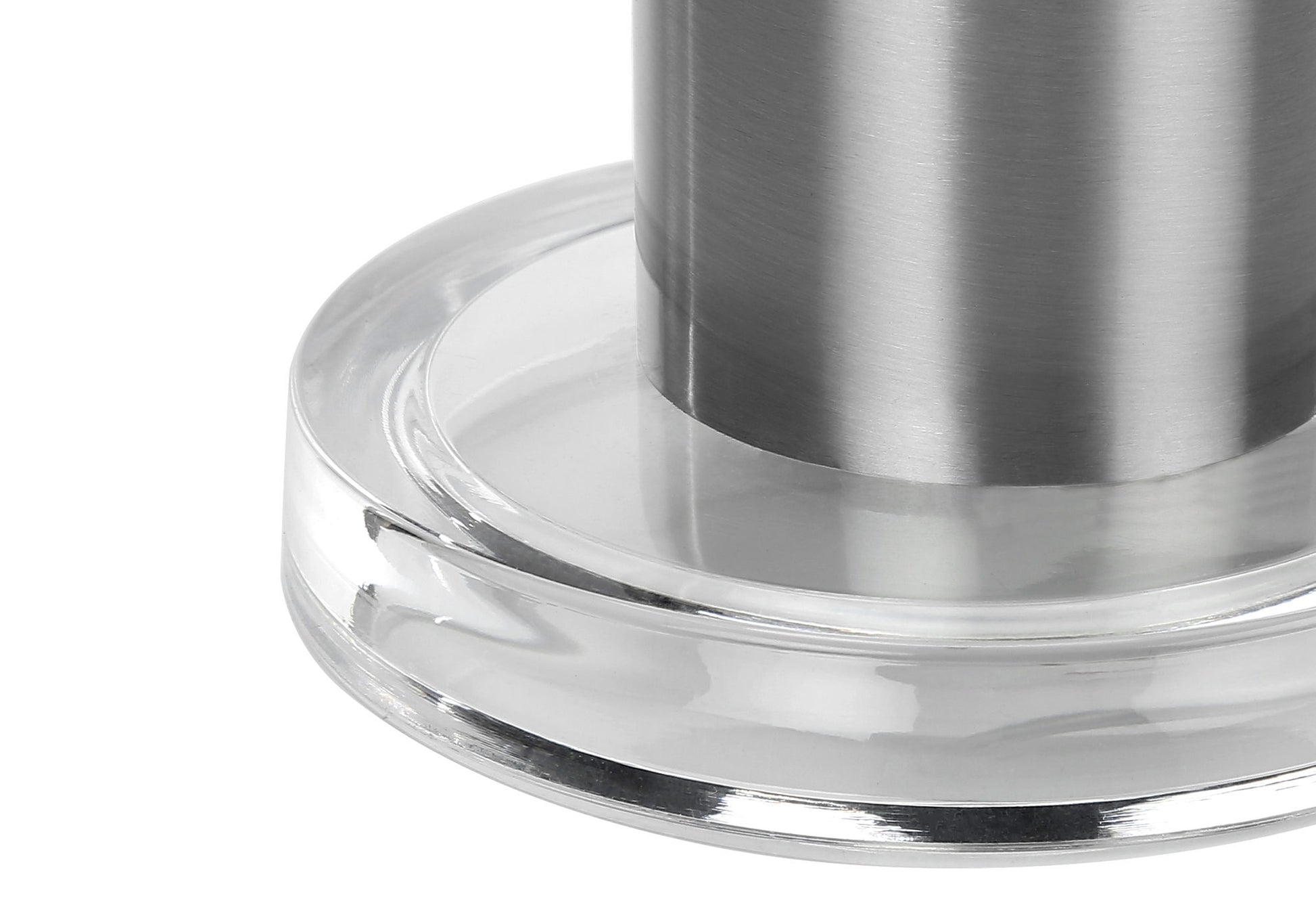 - Stylish Design: Features a contemporary metal cylinder body with a clear acrylic base and linen drum shade.