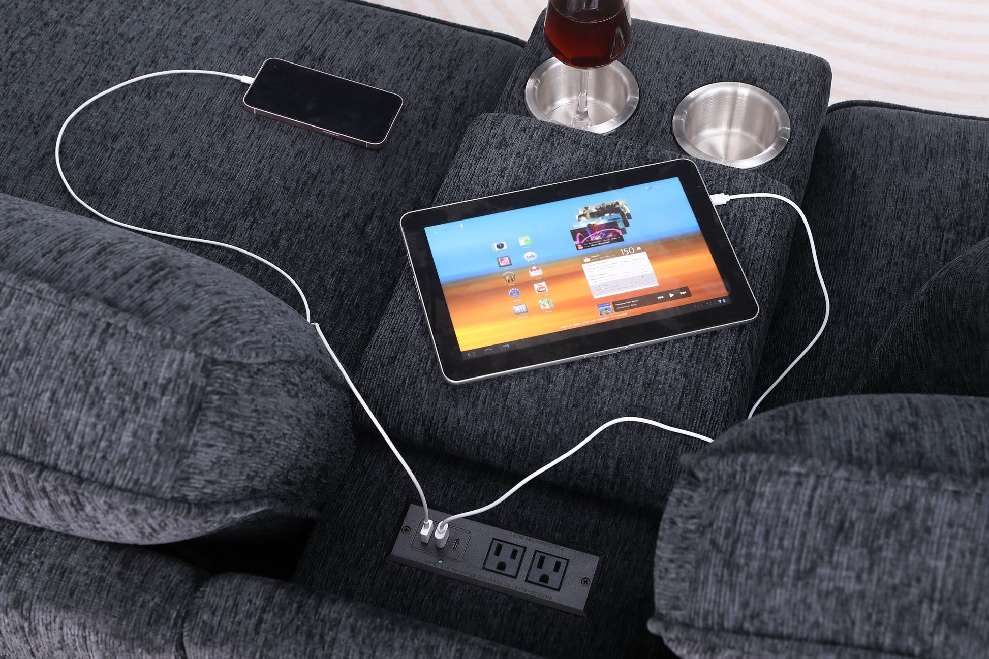 - Convenient Cupholder Console: Features USB port for electronic device charges.