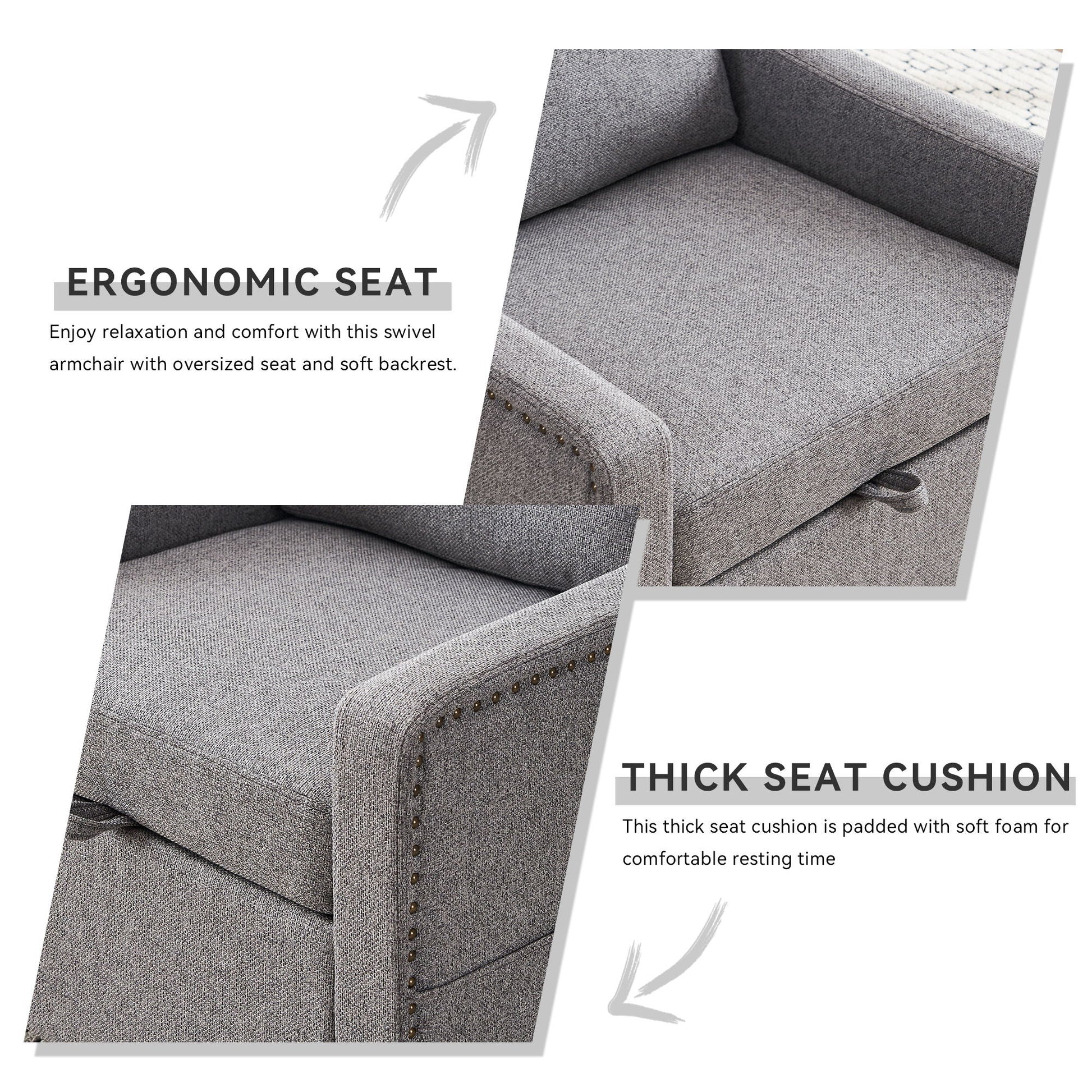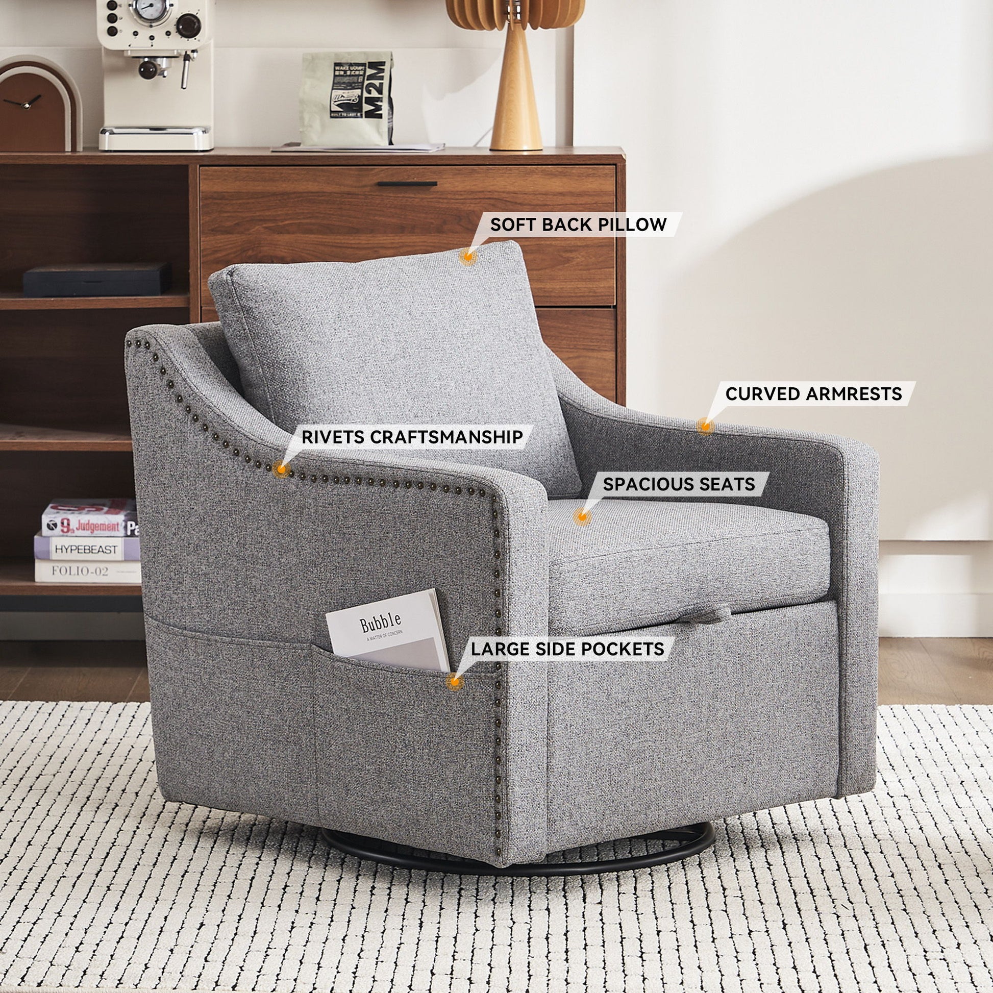Linen Fabric 360° Swivel Accent Chair With Upholstered Back Pillow And Armrest Rivets - Gray