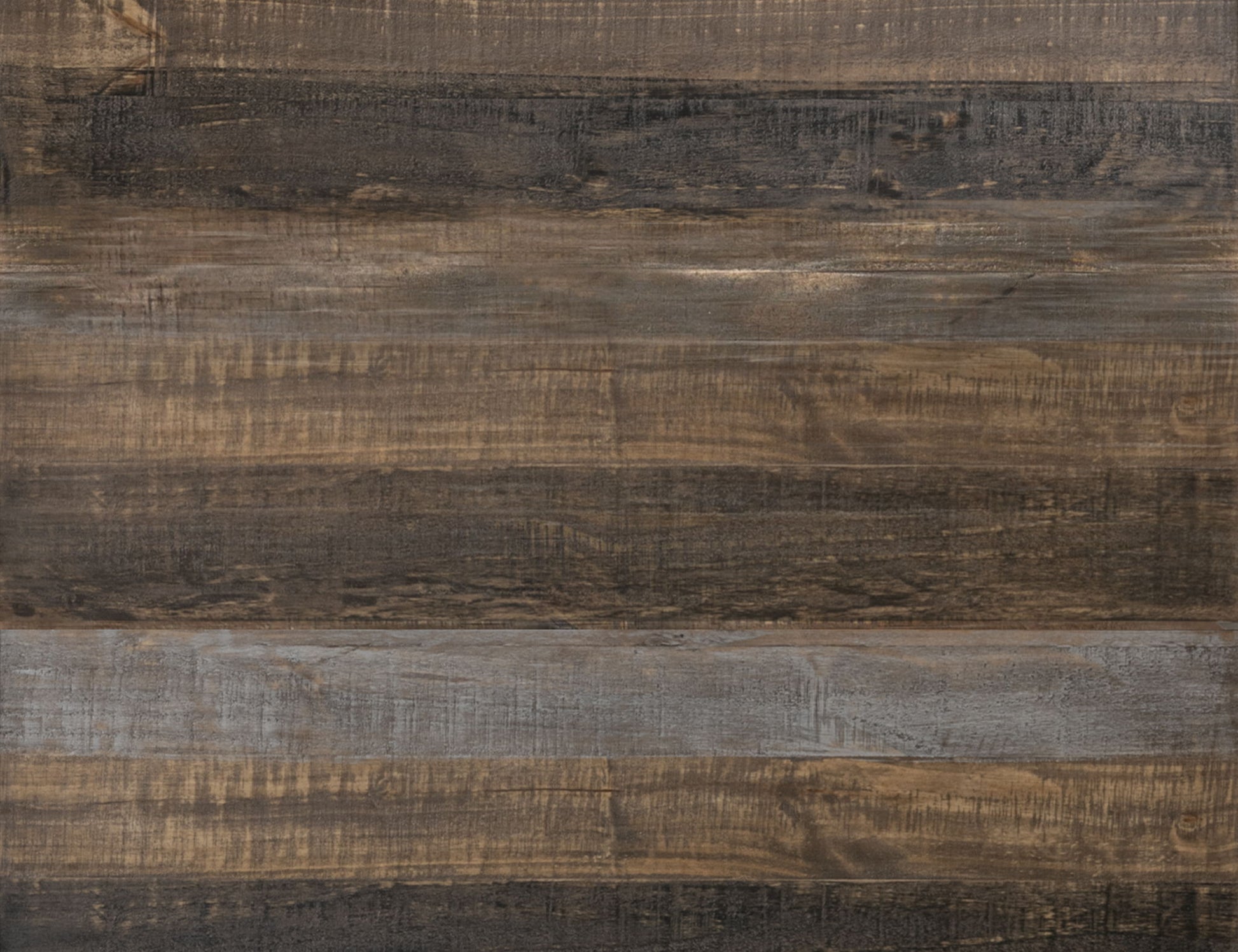 - Multi-step hand-painted water-based acrylic lacquer finish in gray and brown tones for an updated “reclaimed wood” look.
