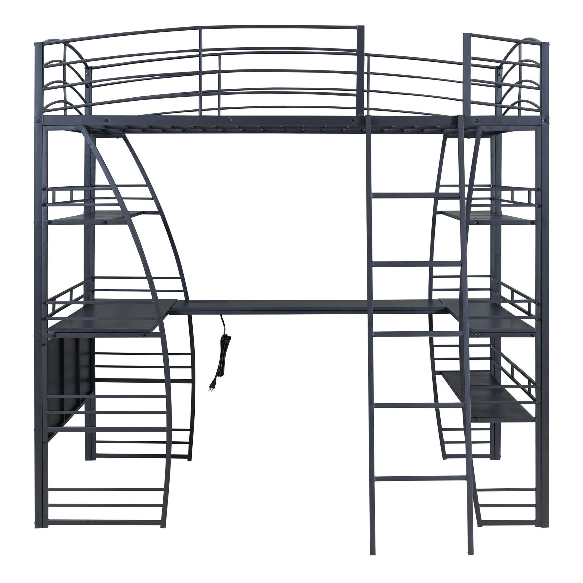 Loft Bed With 4 Layers Of Shelves And L-Shaped Desk, Stylish Metal Frame Bed With A Set Of Sockets, USB Ports And And Wireless Charging