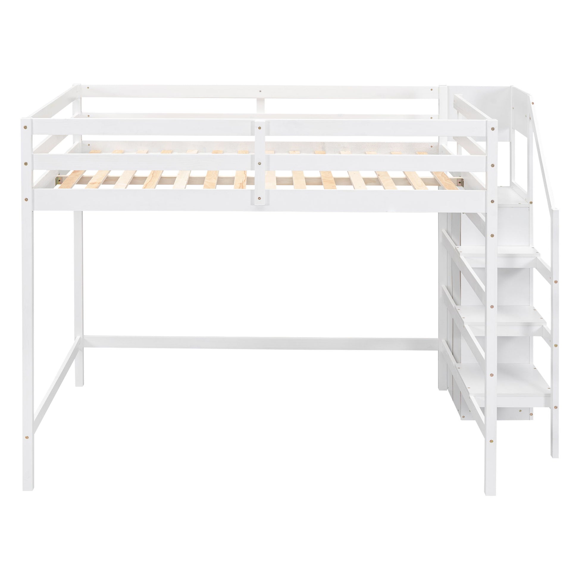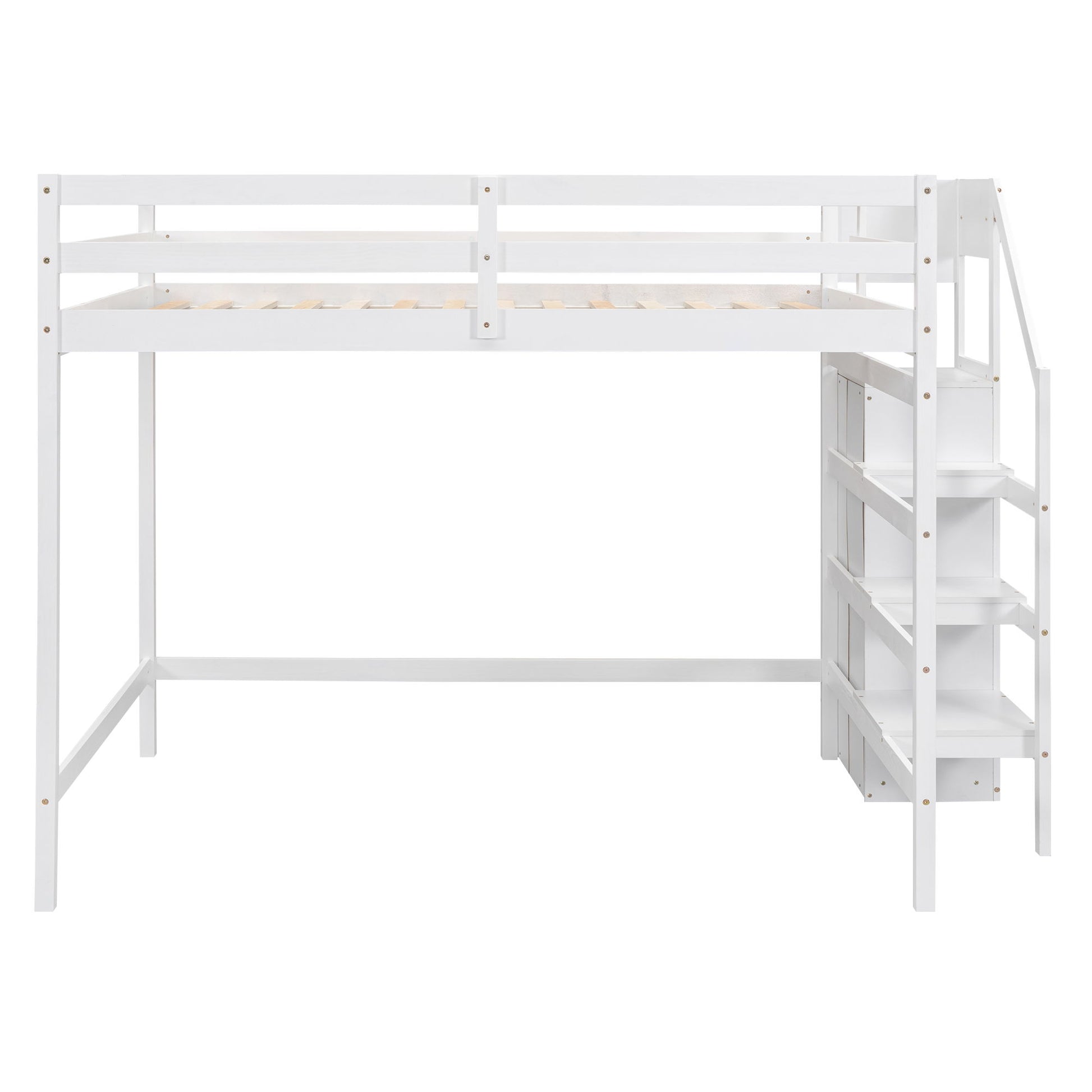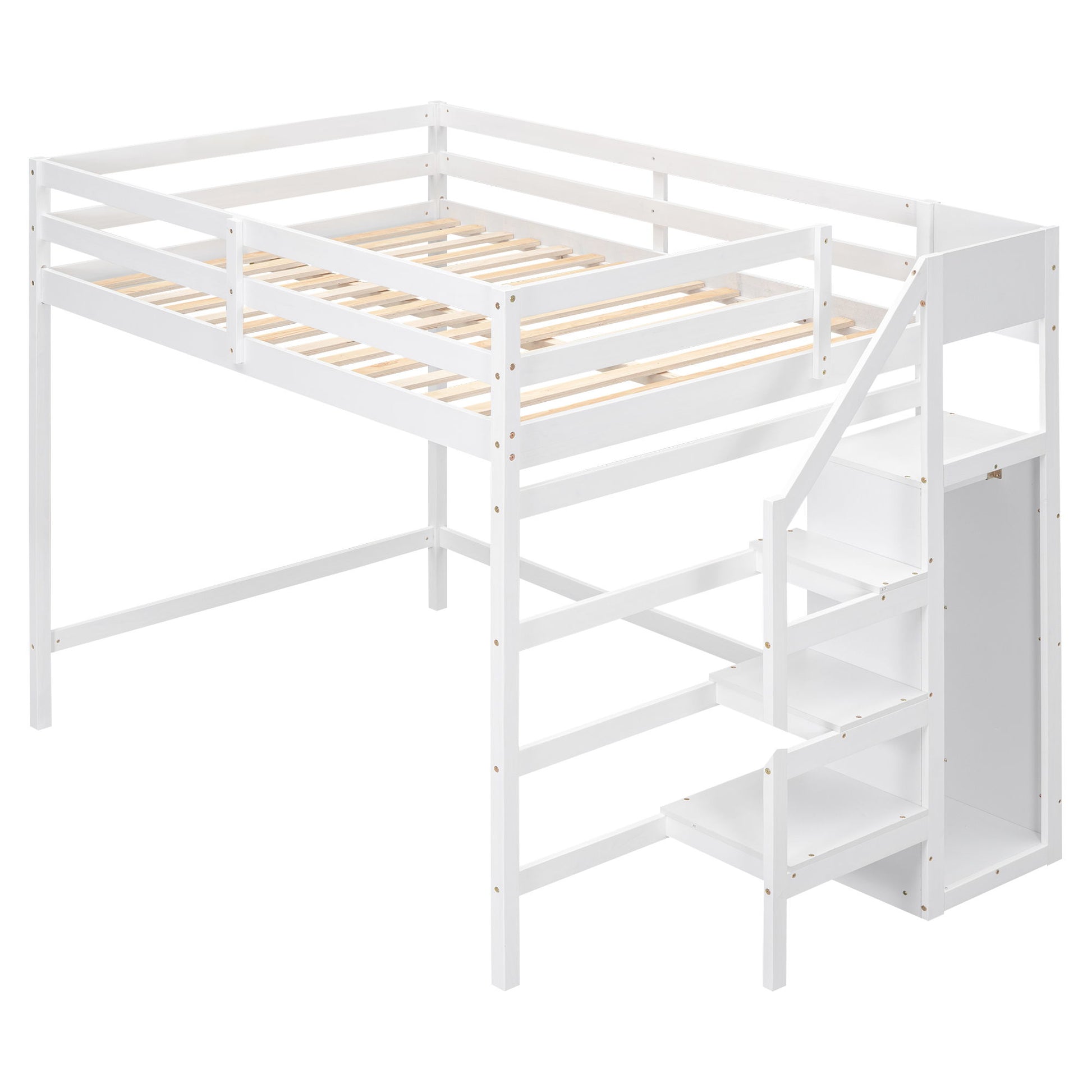 Full Size Loft Bed With Built In Storage Wardrobe And Staircase - White