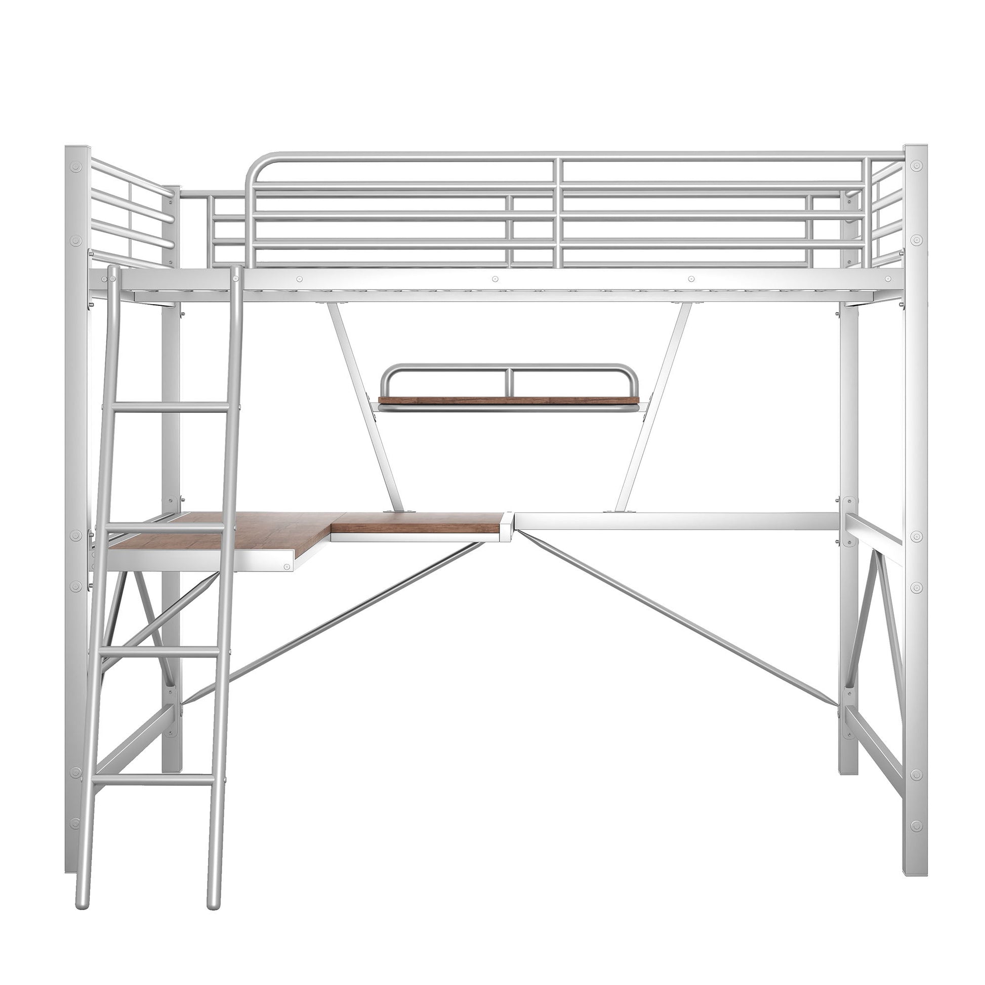 - Sturdy Metal Frame: Strong metal frame with integrated ladder, full-length guardrails, and secured slats for stability and safety.