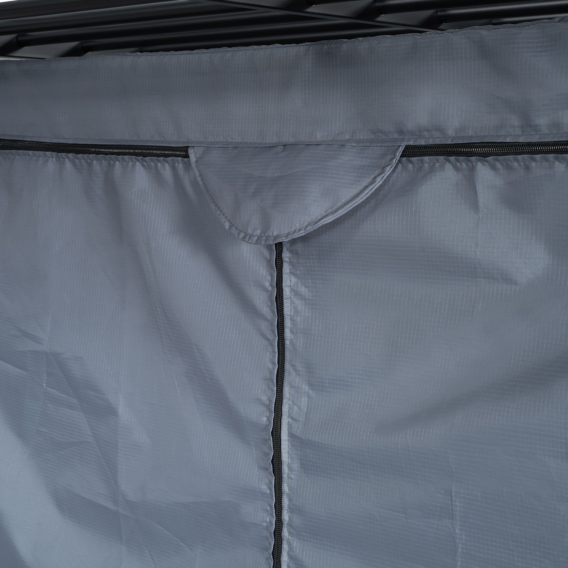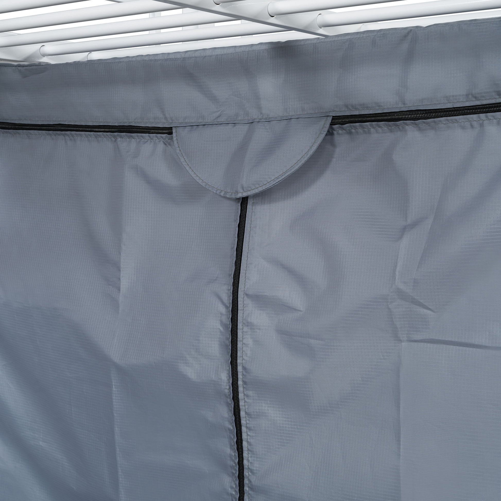 Functional Fabric Wardrobe: On the other side, a practical fabric wardrobe with a hanging rod and shelves for all your storage needs.