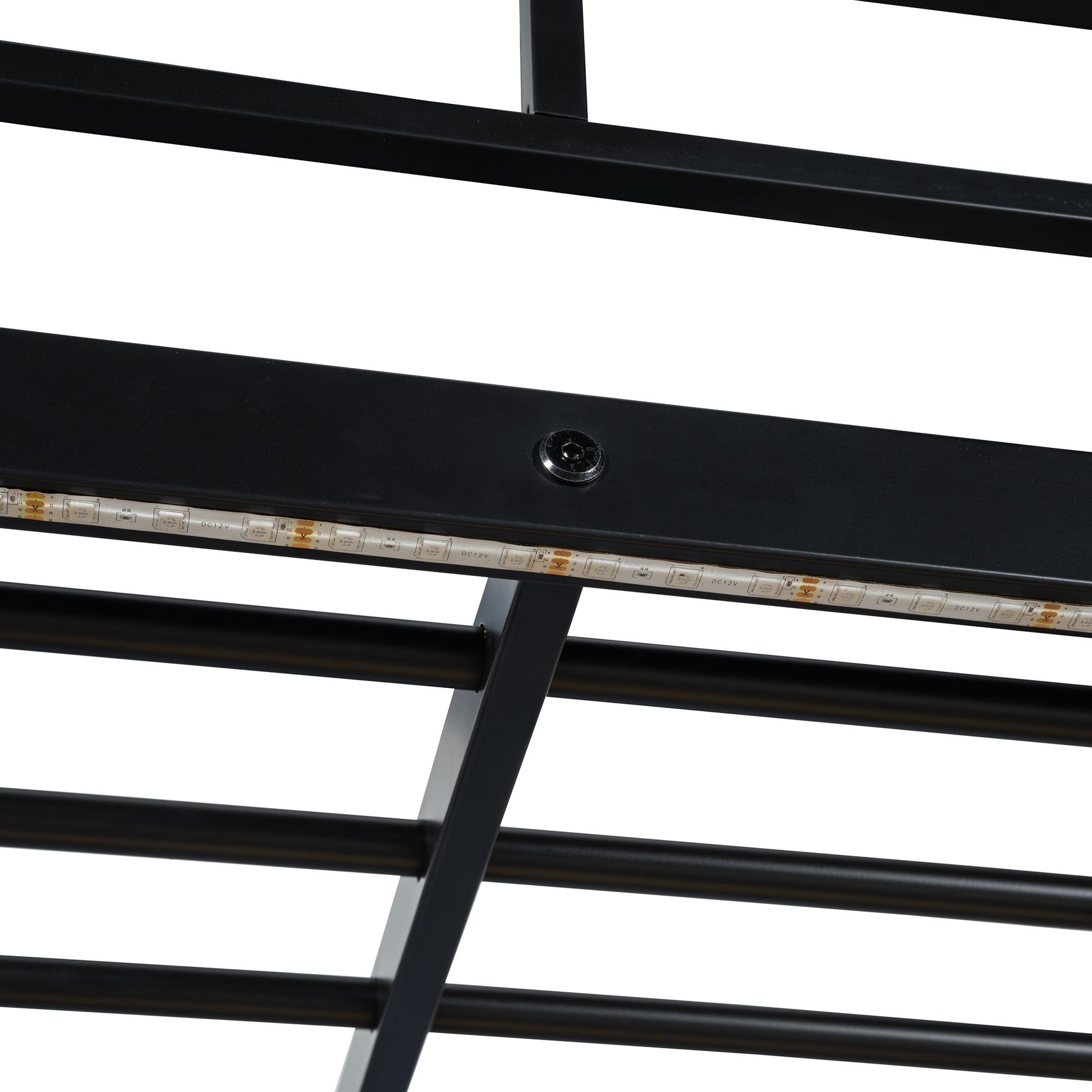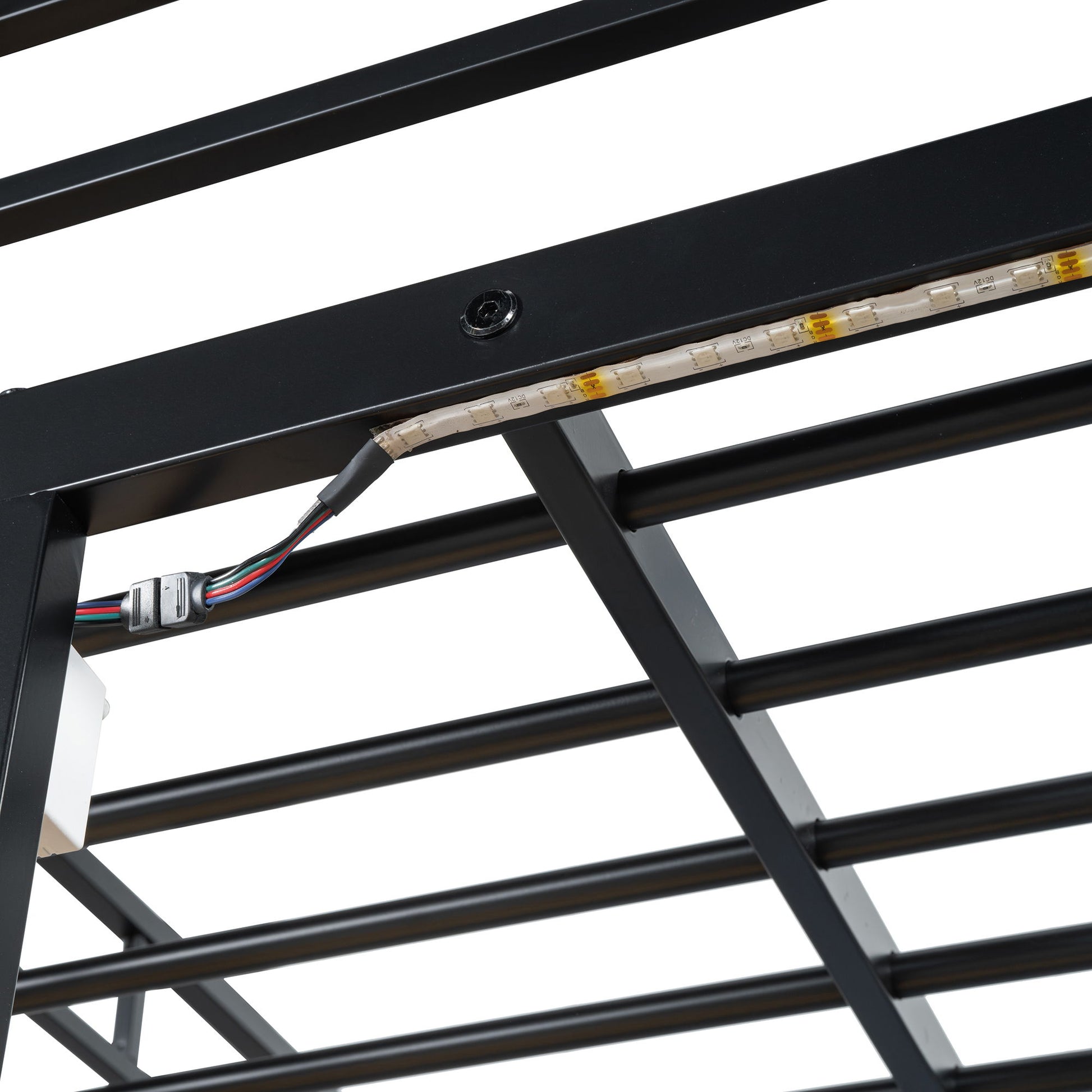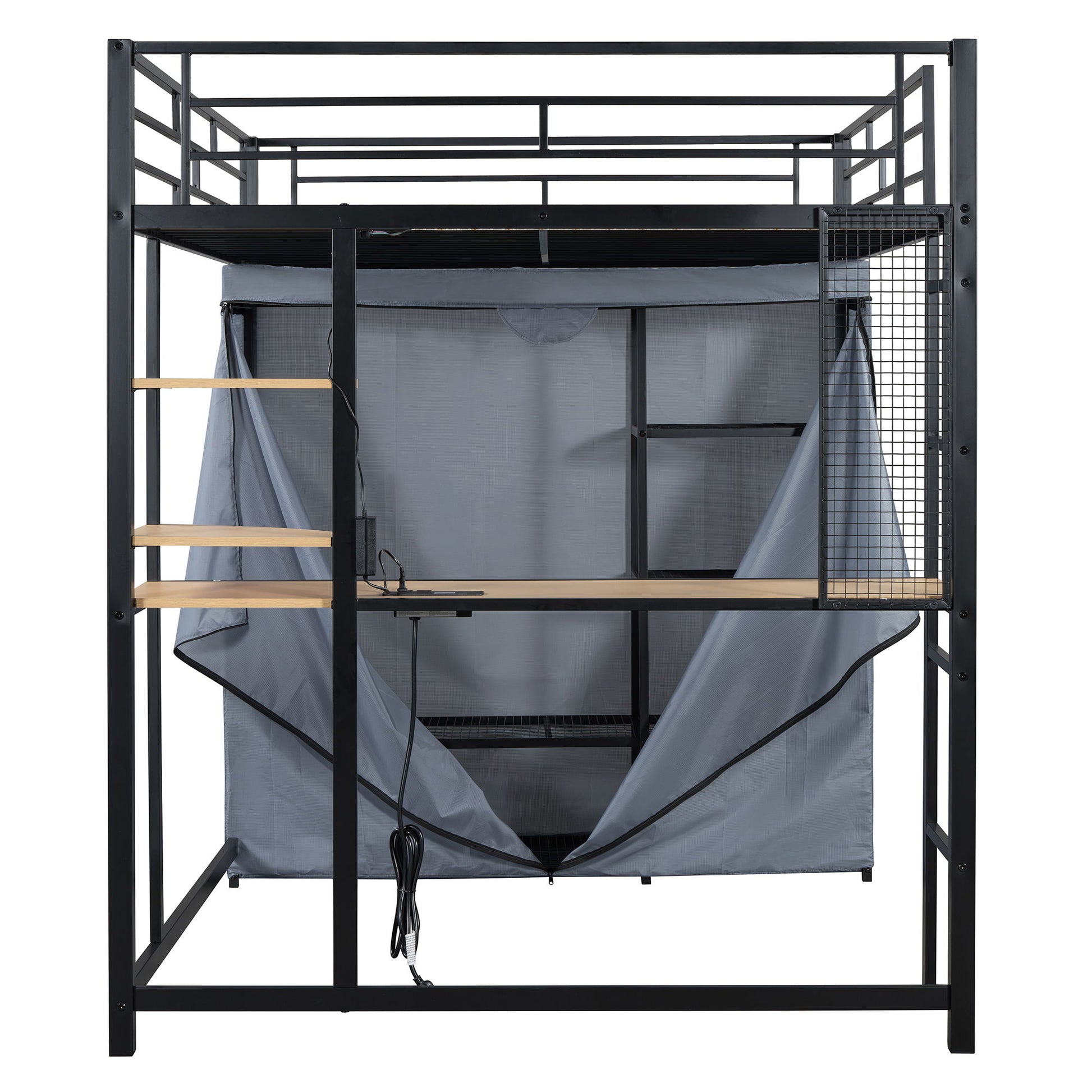 Full Size Loft Bed With Desk, Shelves, Power Outlet, LED Light And Wardrobe - Black