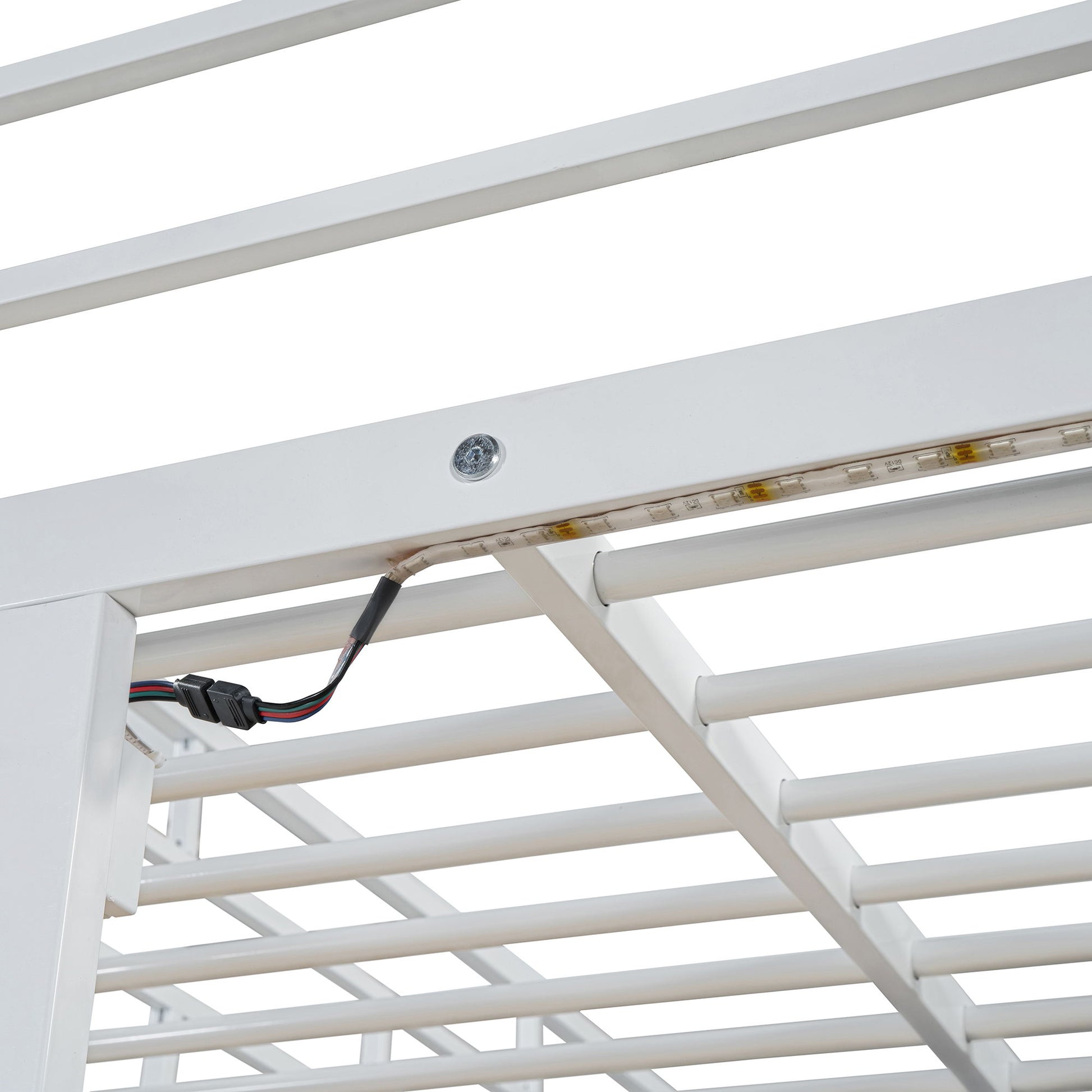 Full Size Loft Bed With Desk, Shelves, Power Outlet, LED Light And Wardrobe - White