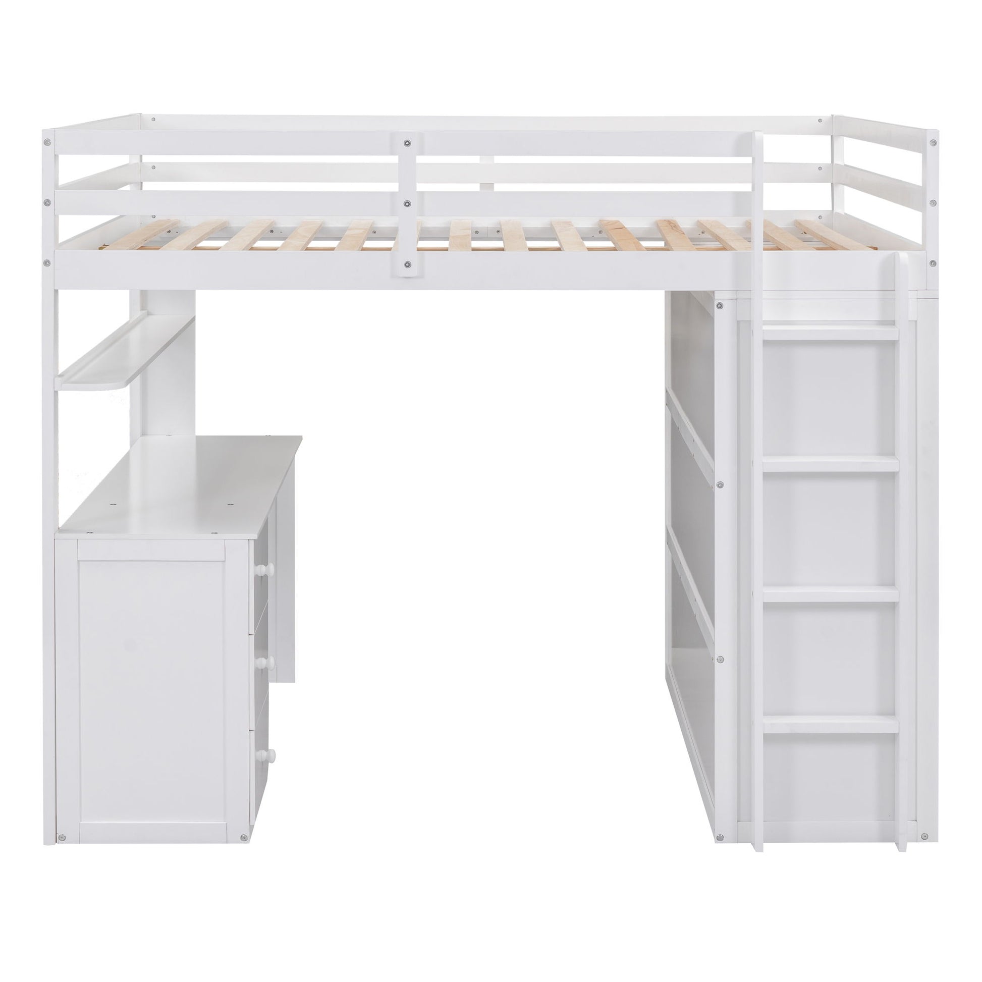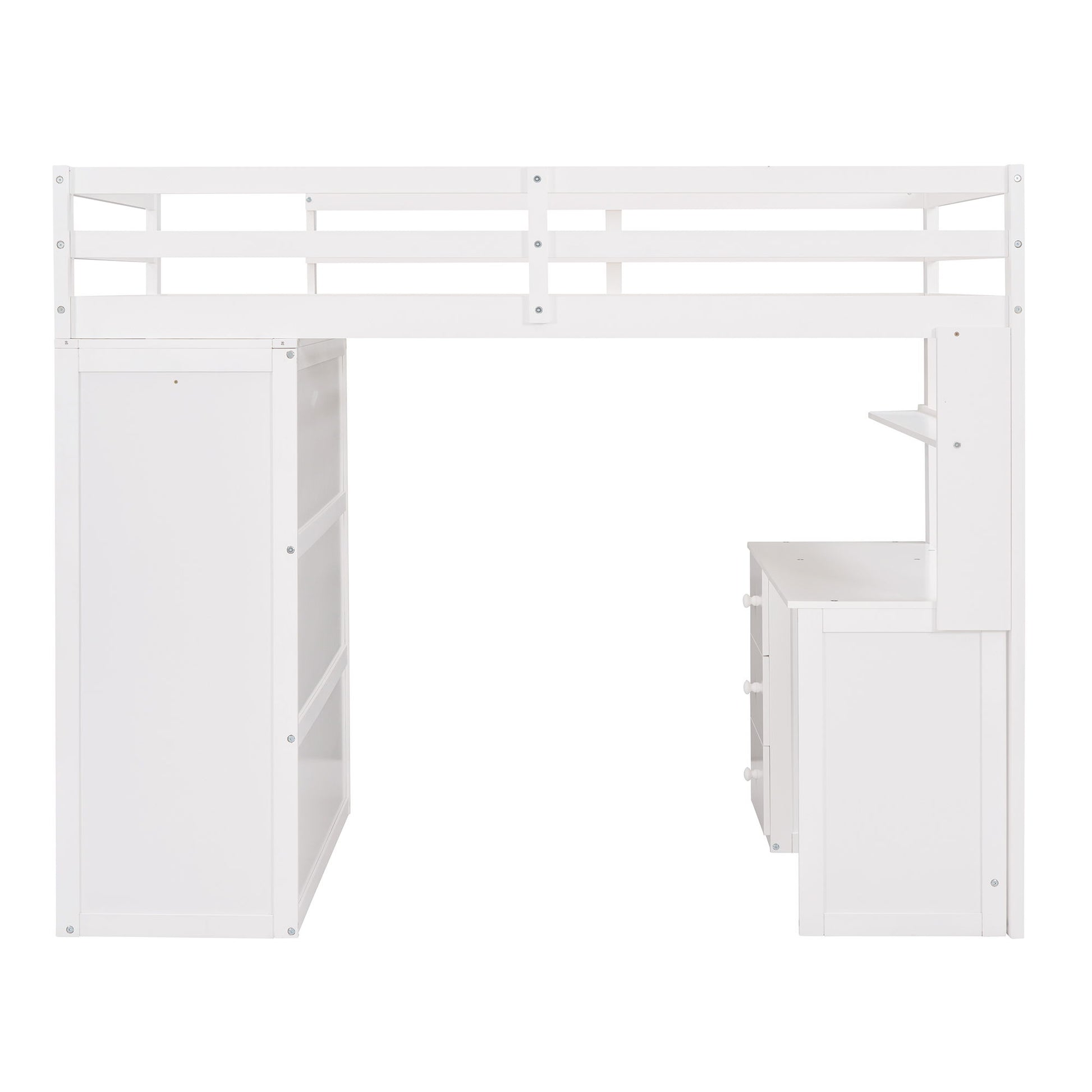 Full Size Loft Bed With Drawers, Desk, And Wardrobe - White