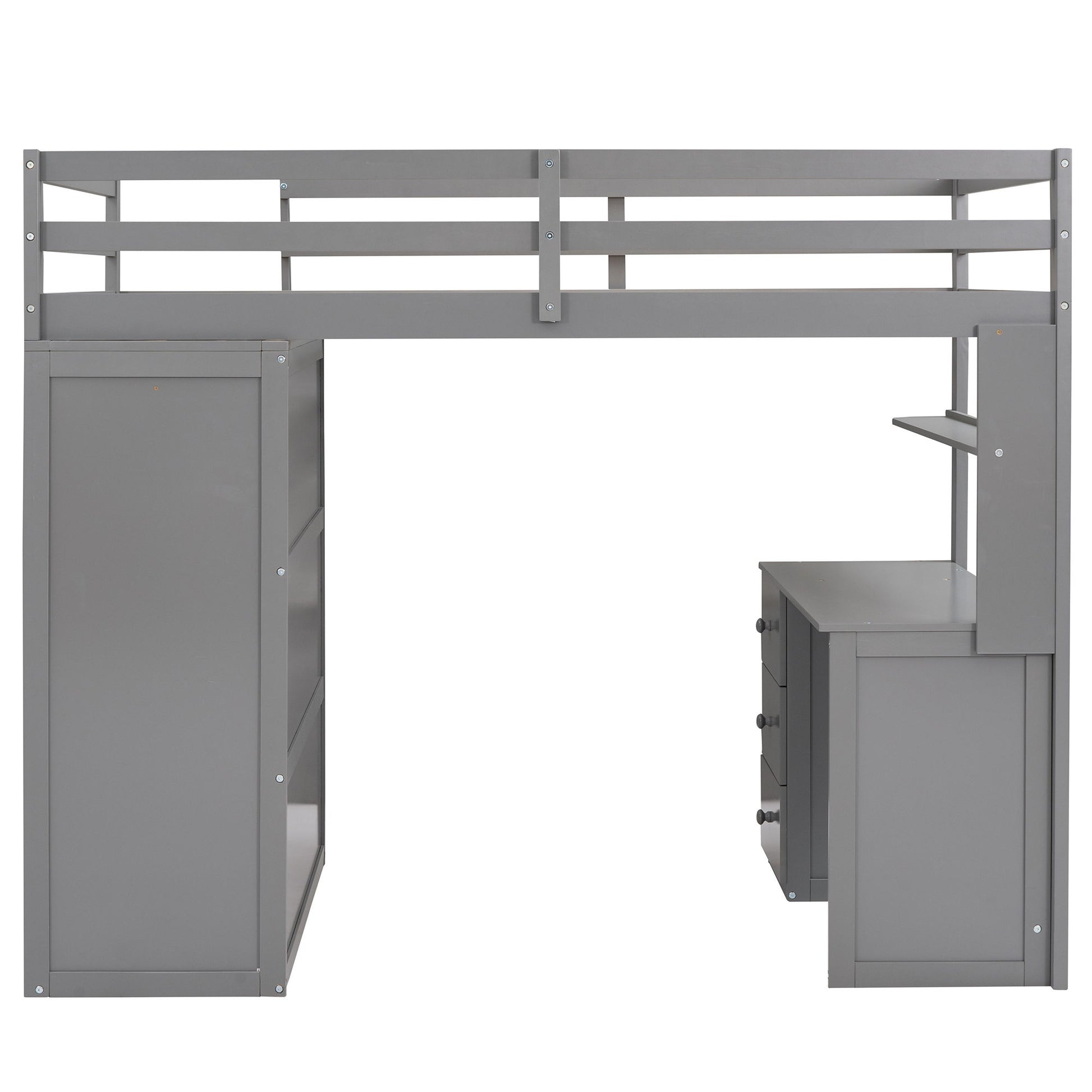 Full Size Loft Bed With Drawers, Desk, And Wardrobe - Gray