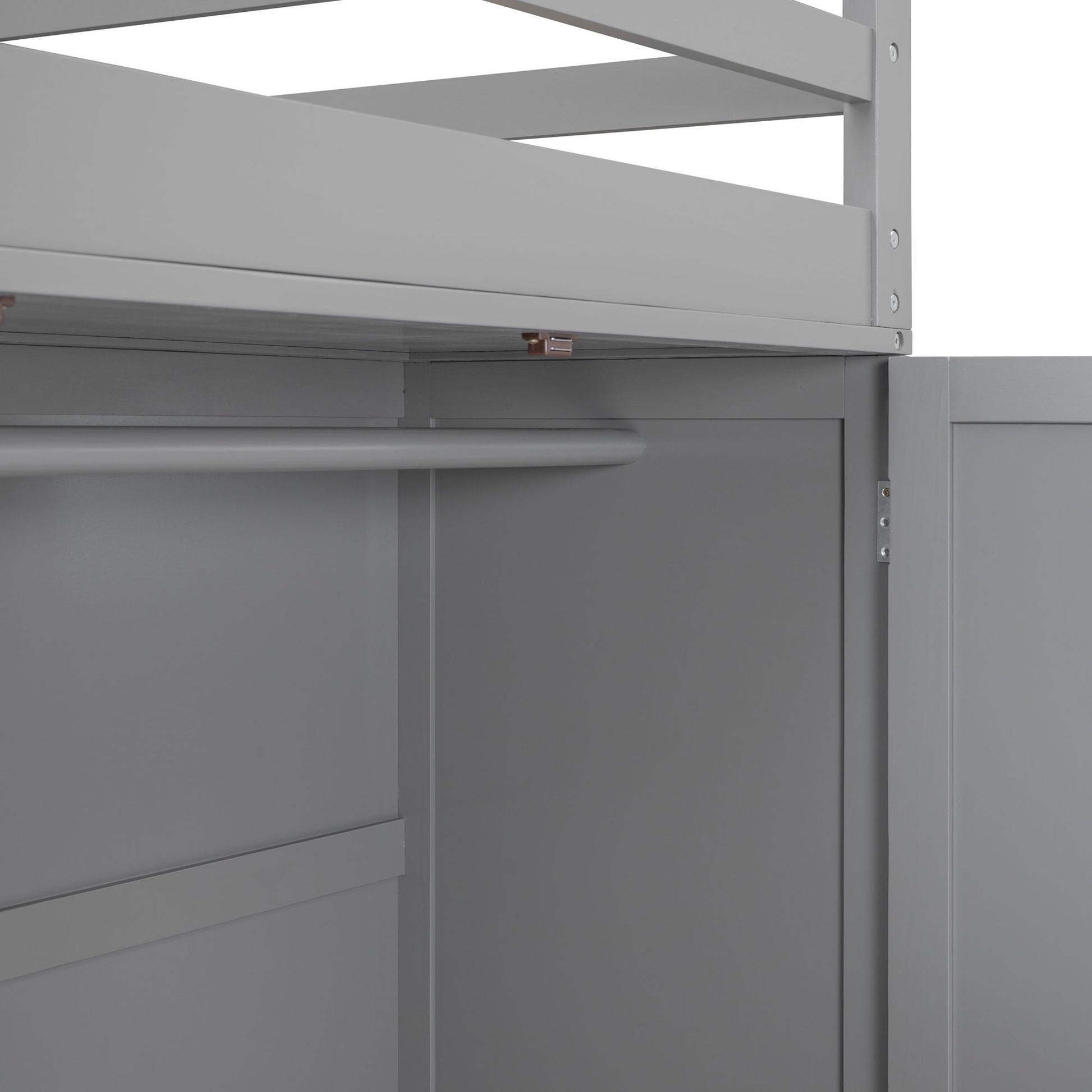 Twin Size Loft Bed With Drawers, Desk, And Wardrobe - Gray