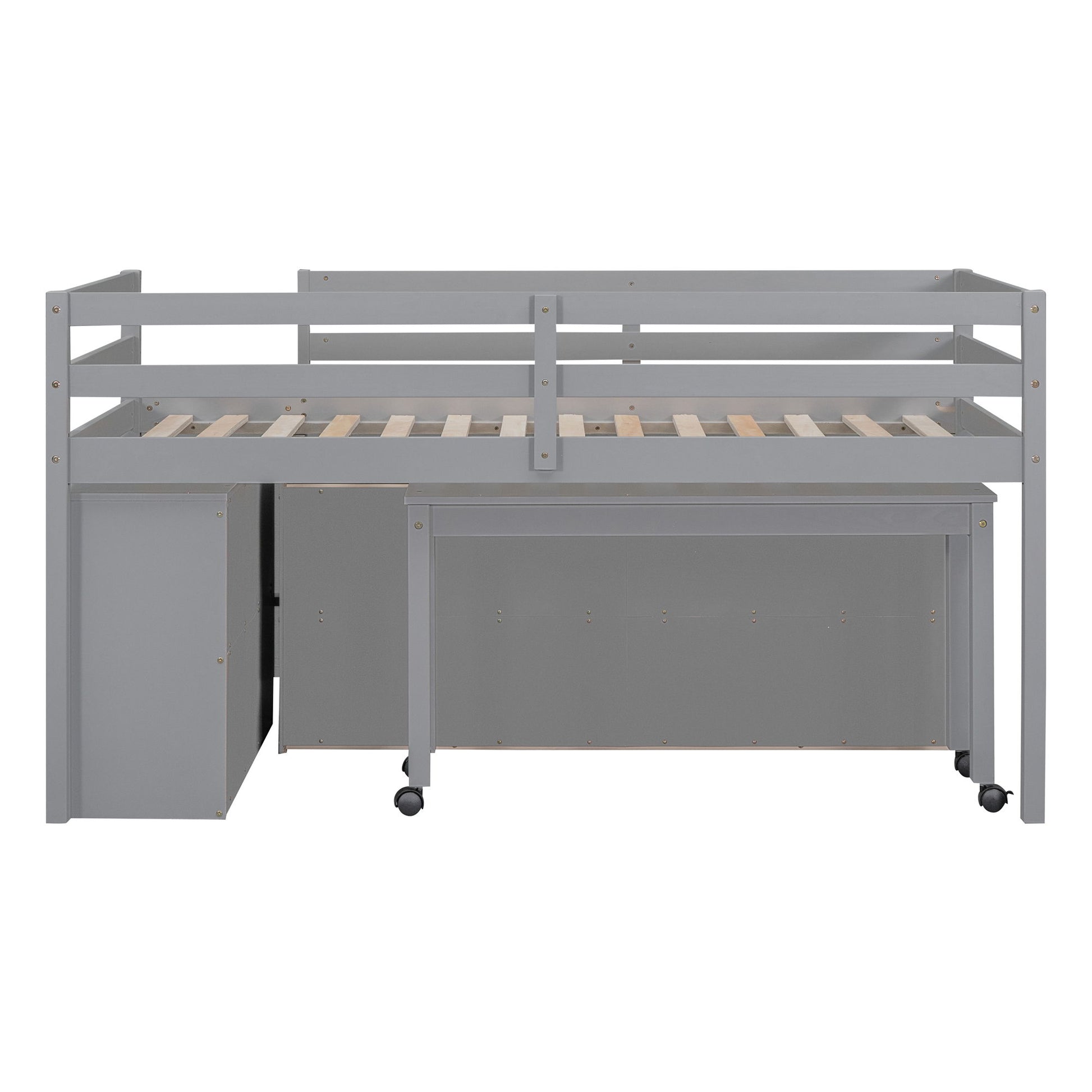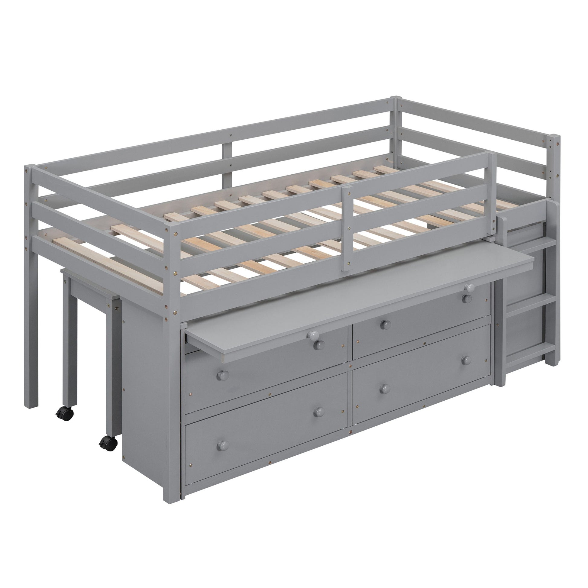 Twin Size Loft Bed With Retractable Writing Desk And 4 Drawers, With Lateral Portable Desk And Shelves - Gray