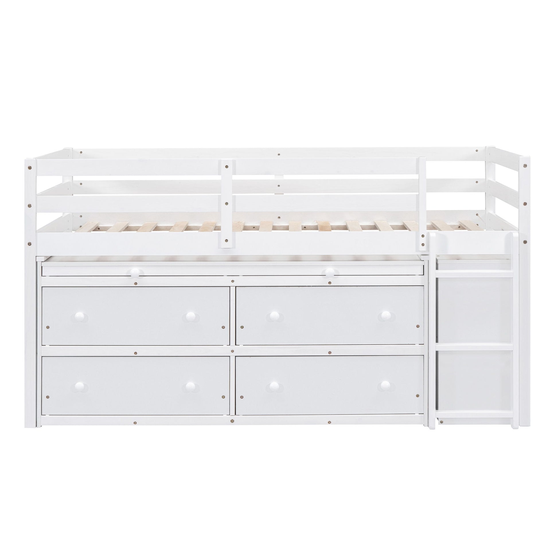 Twin Size Loft Bed With Retractable Writing Desk And 4 Drawers, With Lateral Portable Desk And Shelves - White