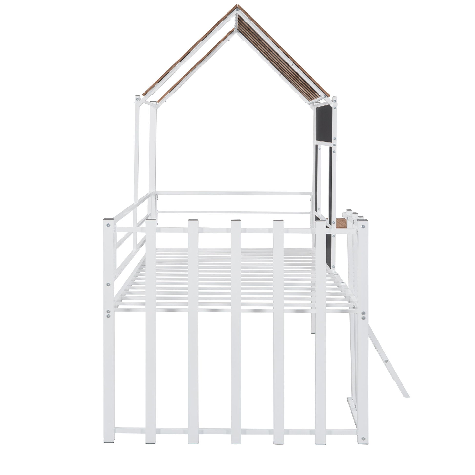 Add a little creativity to your bedroom with this house-shaped double loft bed. This bunk bed features a metal plus plank combination for good stability and safety, can withstand play without dangerous shaking, and has a high load-bearing capacity. A guardrail on the bed ensures your safety. Satisfying the needs of sleep and play at the same time, this loft bed will be a hit in your bedroom.