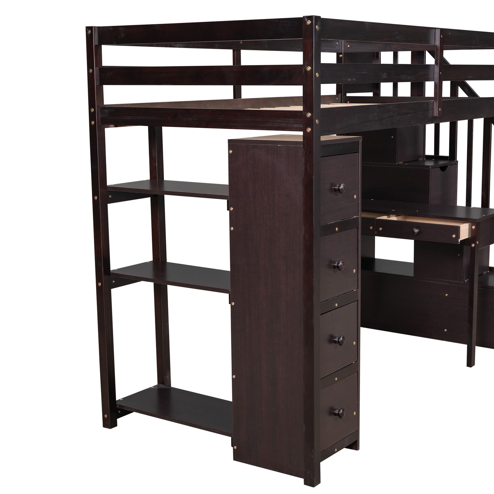 Twin Size Loft Bed With Storage Drawers, Desk And Stairs With Shelves - Espresso