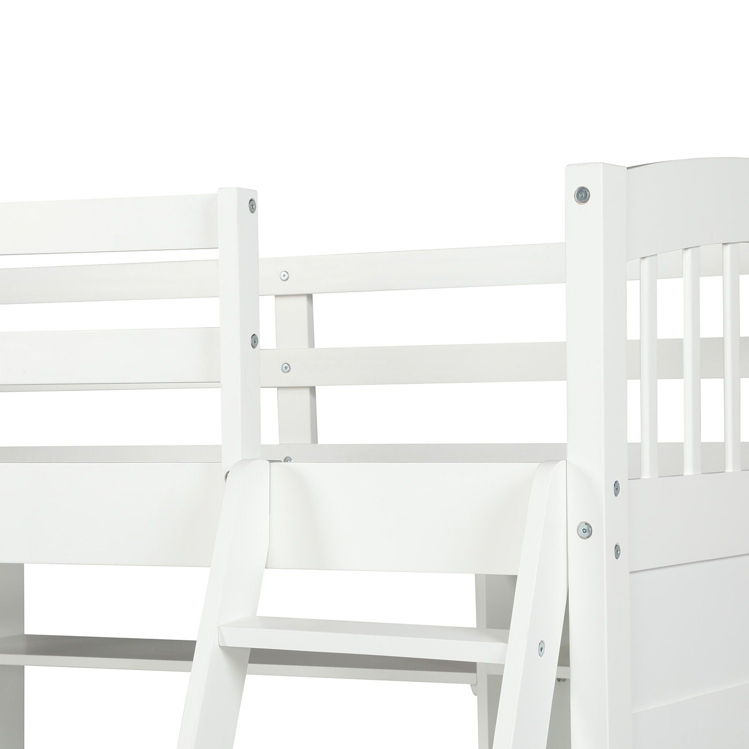 Twin Size Loft Bed With Storage Shelves, Desk And Ladder - White