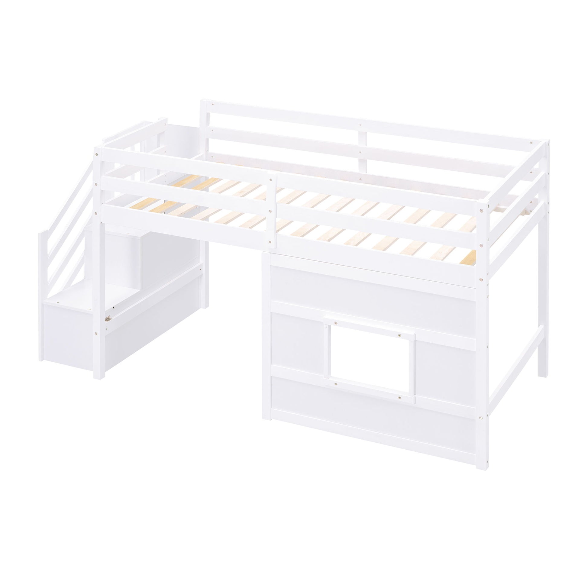 Loft Bed With Storage Staircase, Window & LED Light