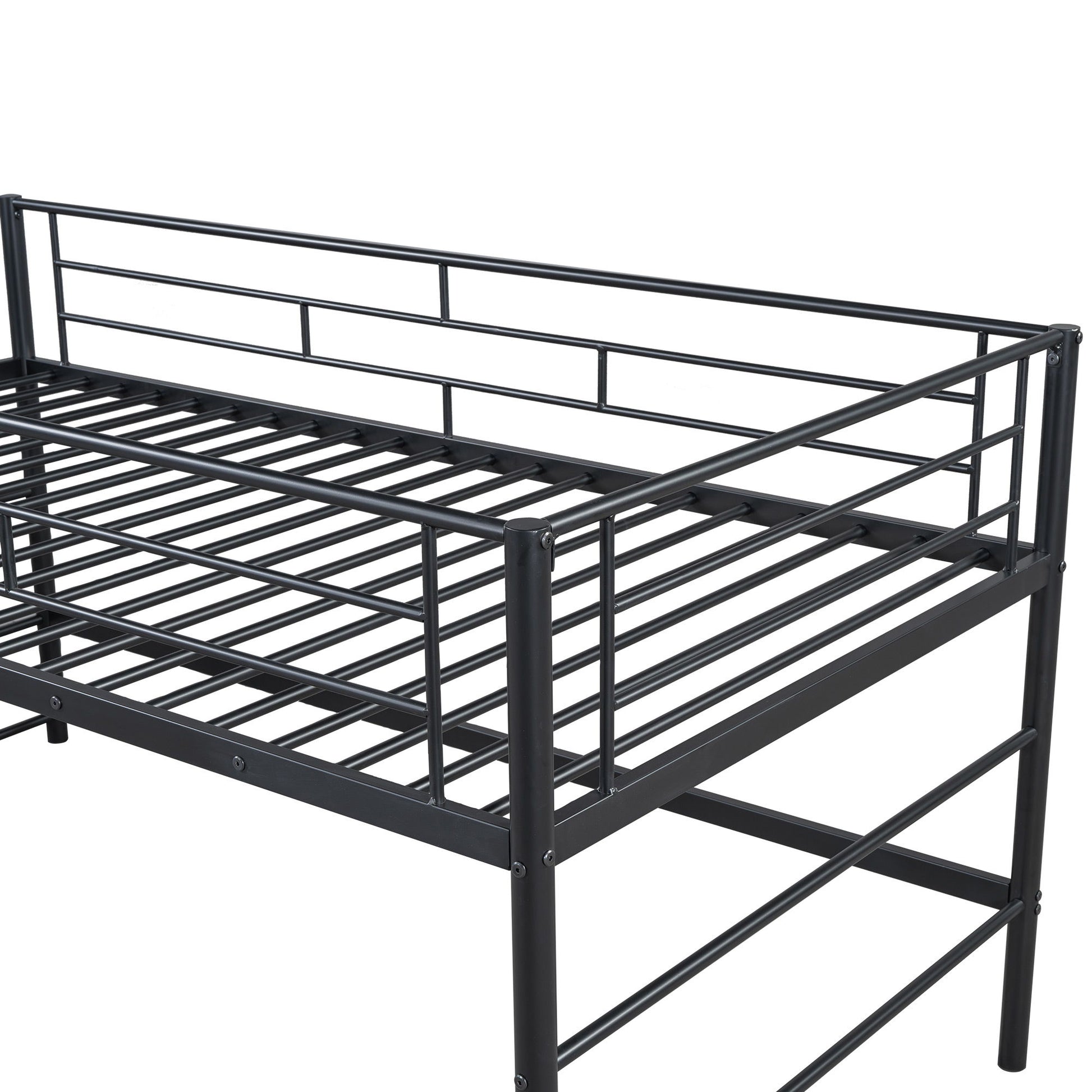 Twin Loft Bed With Storage Stairs And Metal Frame - Black