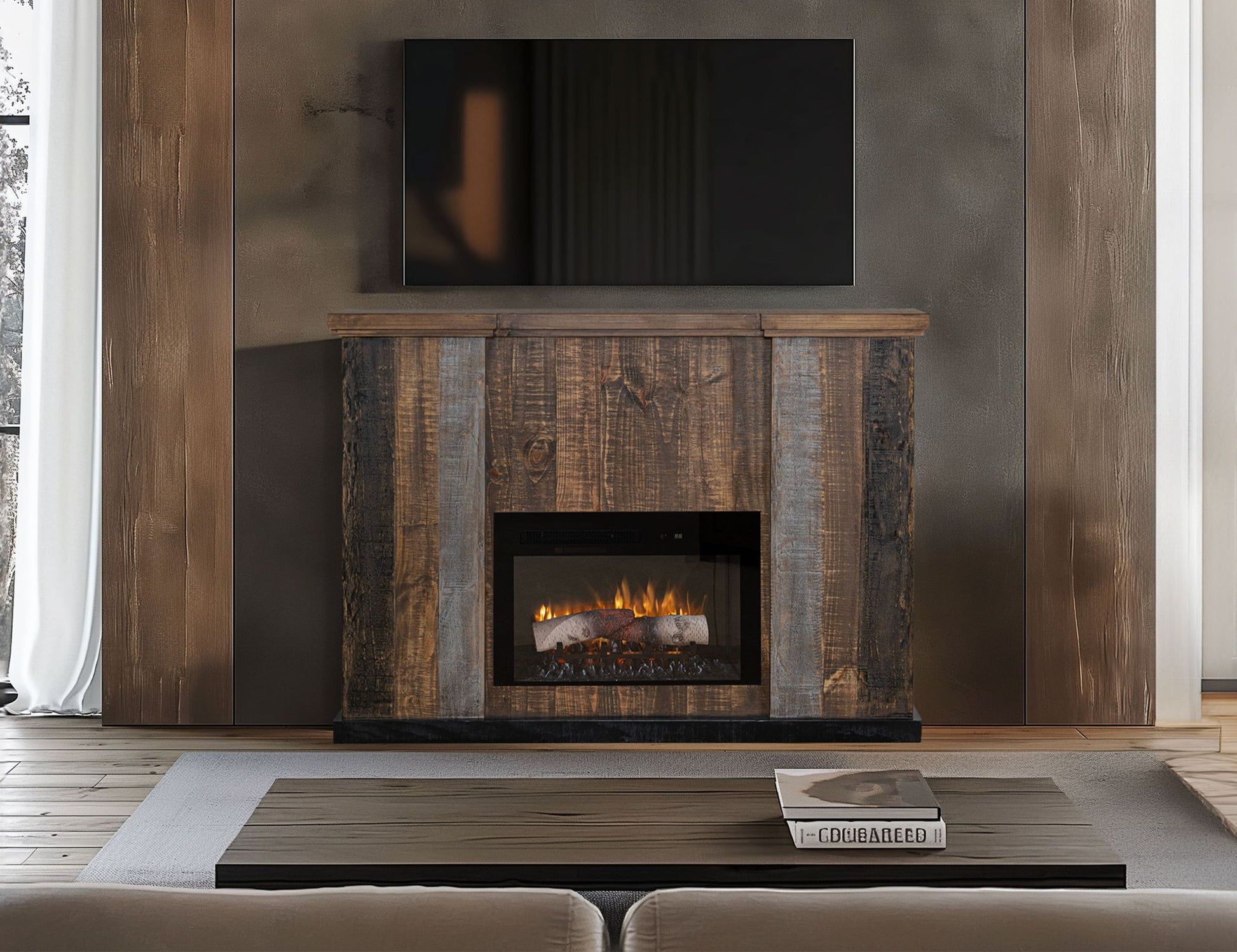 - The electric fireplace device is sold separately.