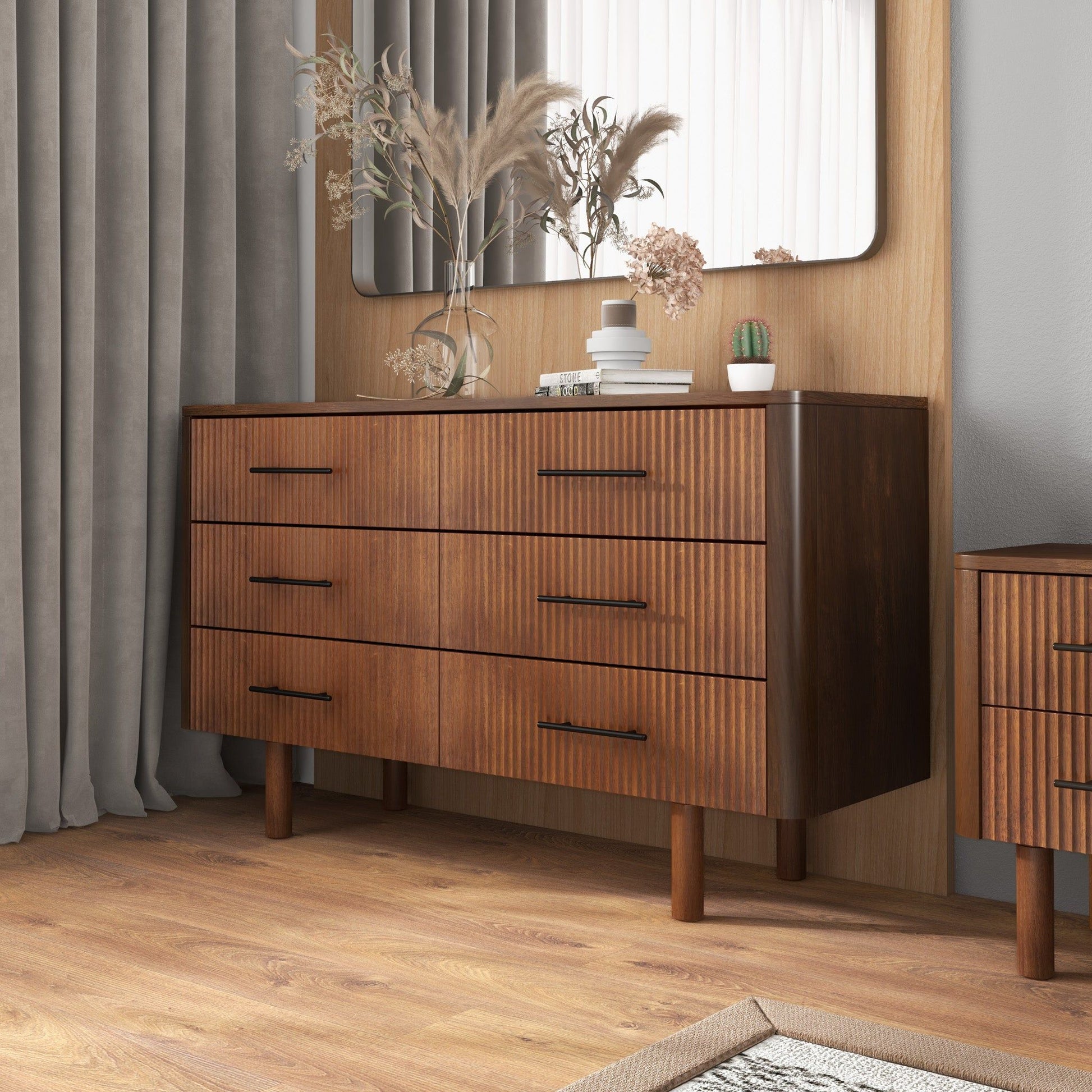 Logan - Mid-Century Modern Dresser With 6 Drawers - Brown