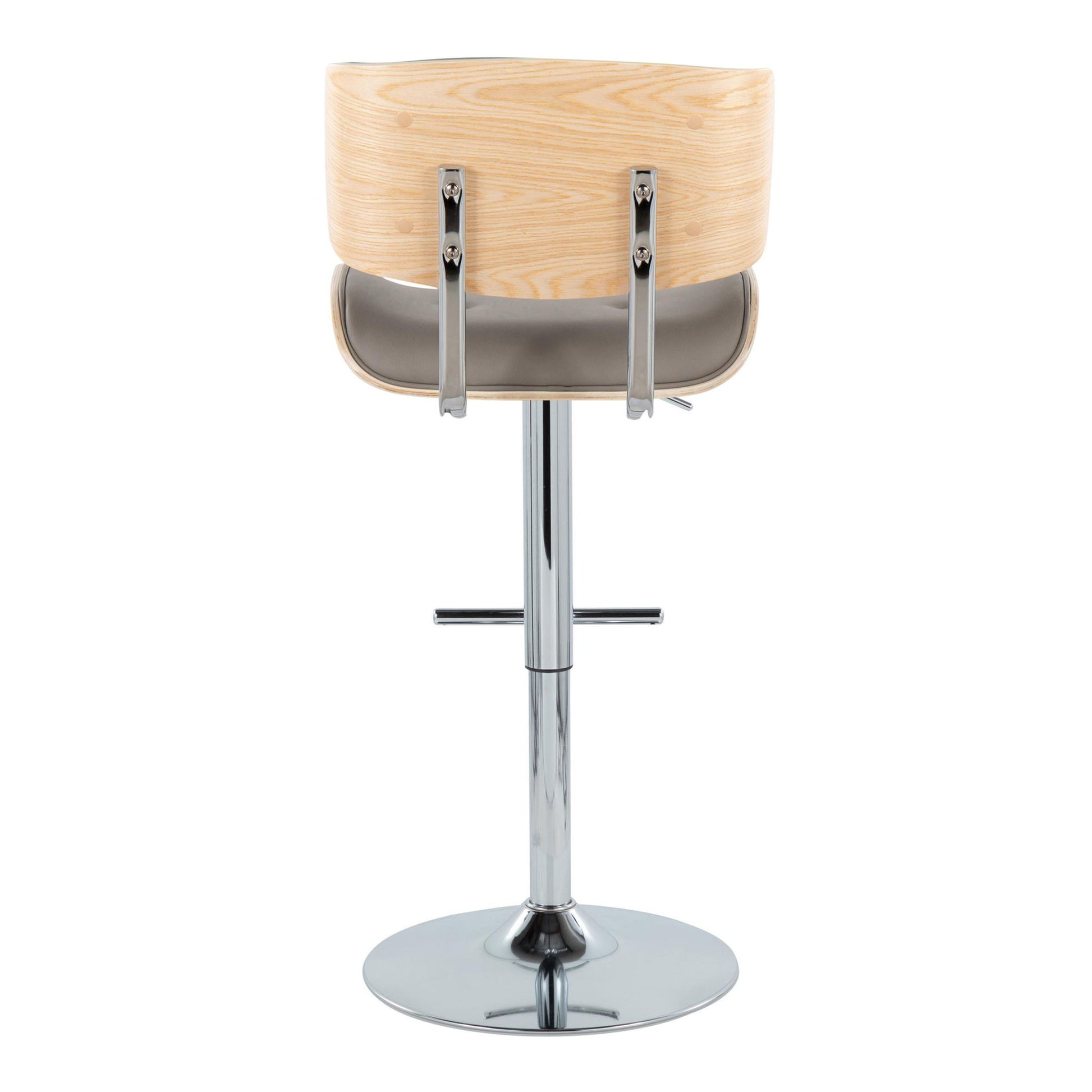 Lombardi - Contemporary Adjustable Barstool With Swivel With Straight T Footrest (Set of 2) - Chrome / Natural / Light Gray