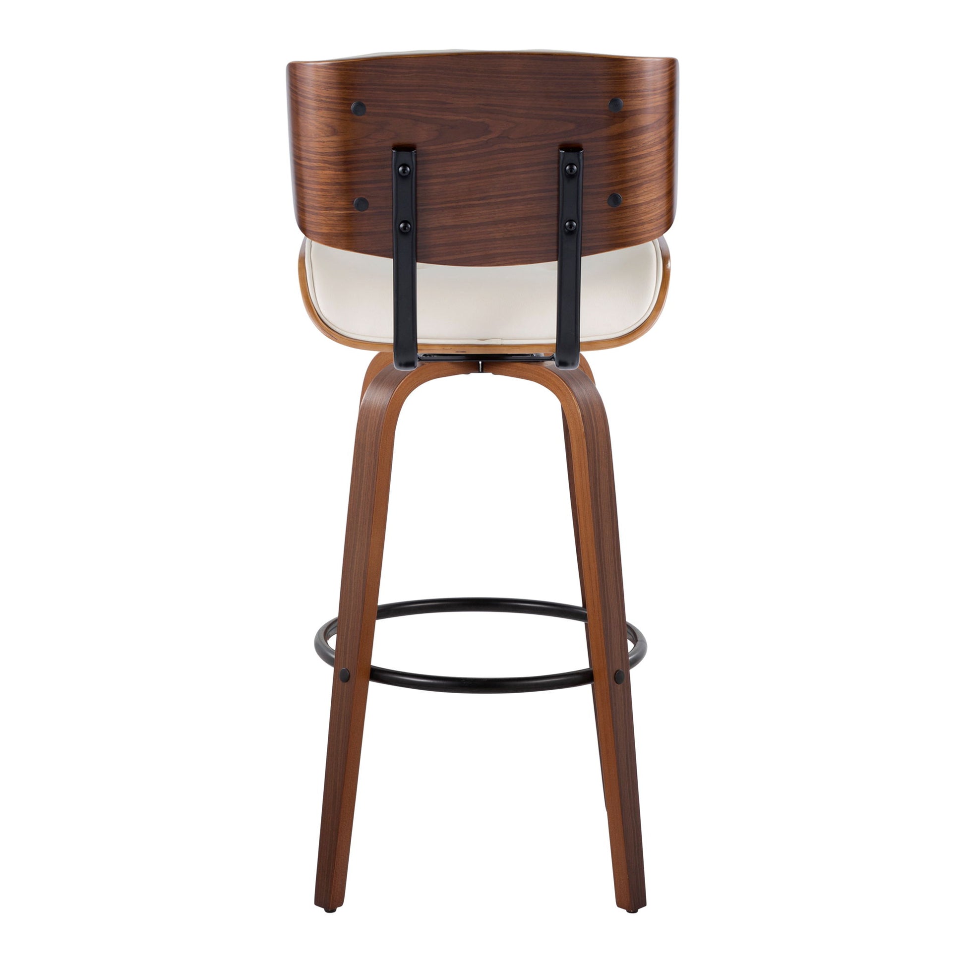 Lombardi - Mid-Century Modern Fixed Height Barstool With Swivel With Round Footrest (Set of 2) - Walnut / Cream